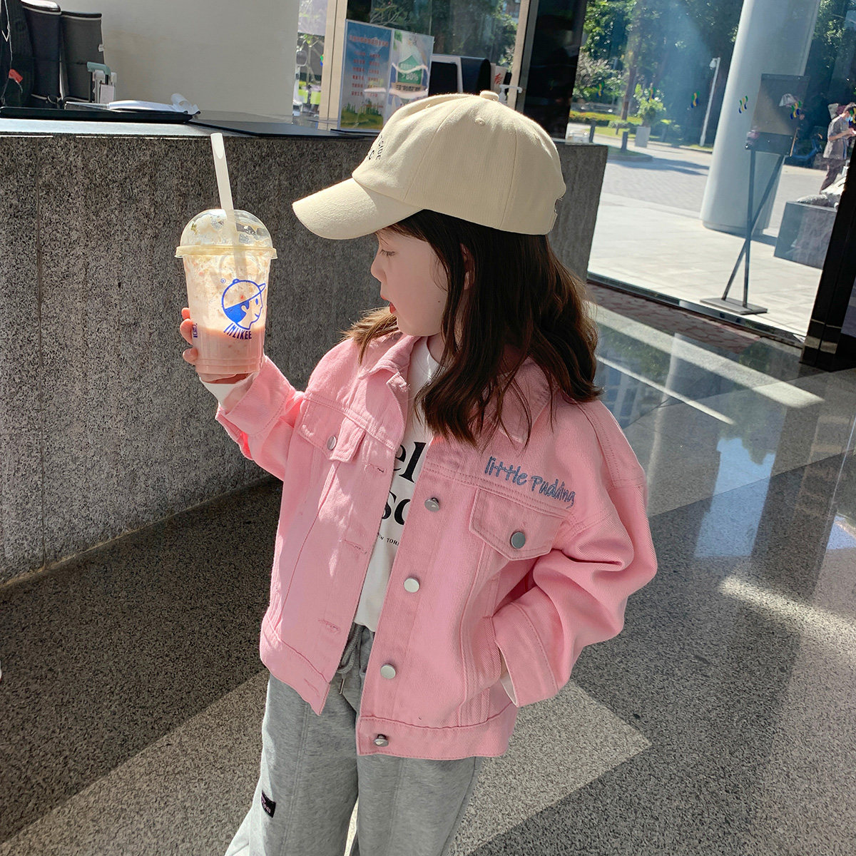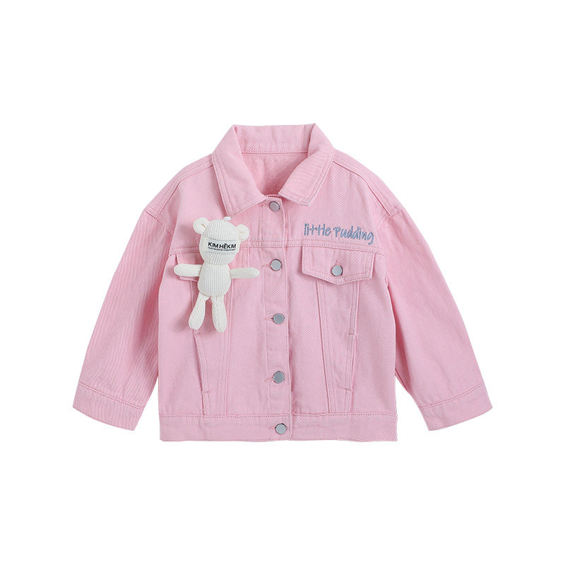 Foam Home Custom children's clothing 2022 new girls Han version Denim Jacket Children Cartoon Blouse Baby Spring Dress Damp