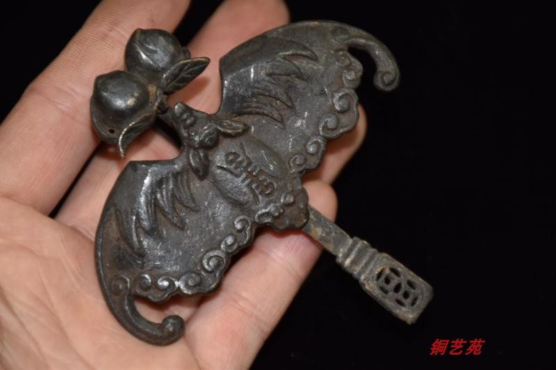 Chinese bat Birthday Peach Bronze Lock Imitation Antique Lock Cross Open Padlock Old Small Key Lock Vintage Pure Bronze Ancient Horizontal Bolt Lock