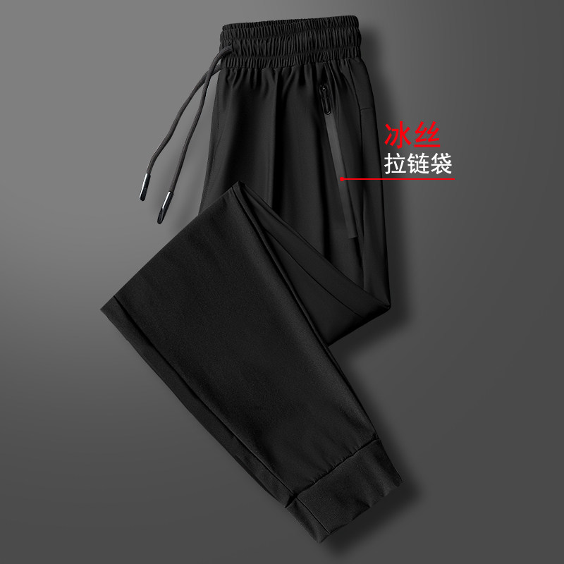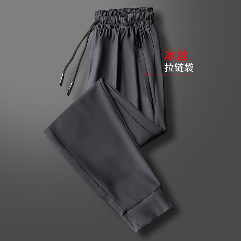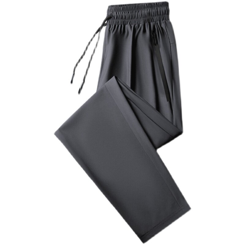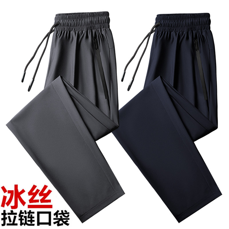 Men's Ice Silk Pants Summer Thin trends 90% Pants Elastic Speed Dry Air Conditioning Pants Men Loose Straight Barrel Long Pants Bomb-Taobao