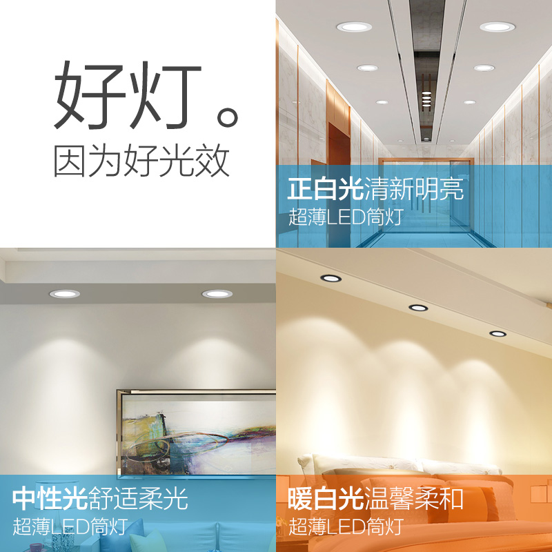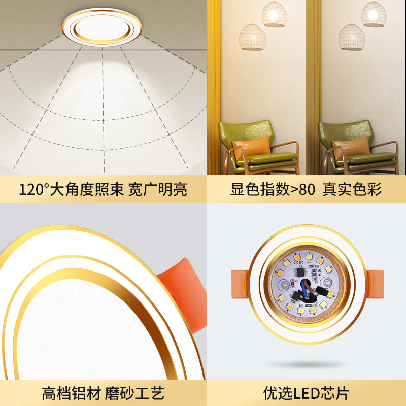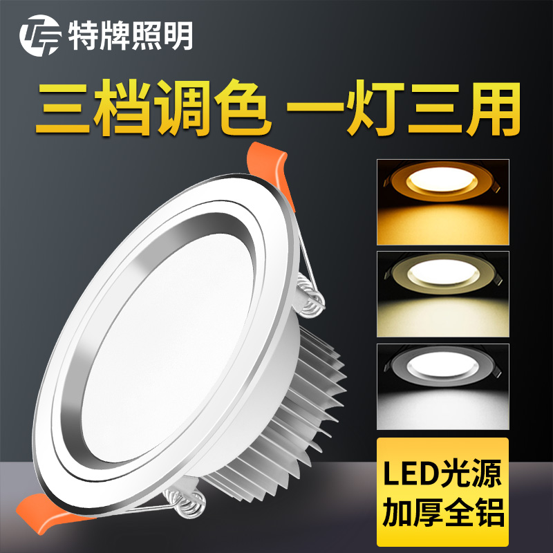 Three-colour light-changing cylinder light LED ceiling lamp spotlight recessed domestic living room ceiling copper lamp hole lamp dongle lamp