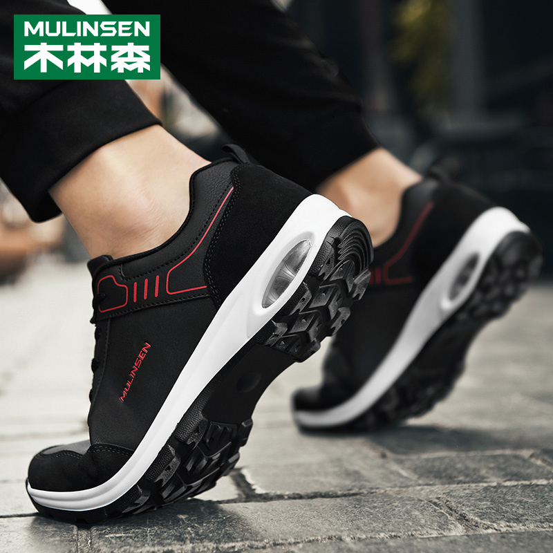 Wood Linson Men Shoes Summer Air Cushion Casual Leather Shoes Men Genuine Leather Middle-aged Dad Sneakers 100 Hitchhiking Shoes