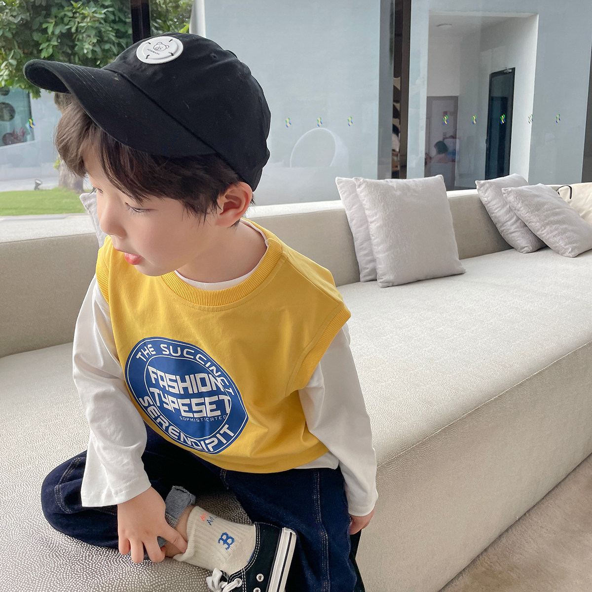 Children's clothing 2022 new boys spring clothing baby waistcoat children's spring and autumn cash vest blouses outside the sleeveless clothing