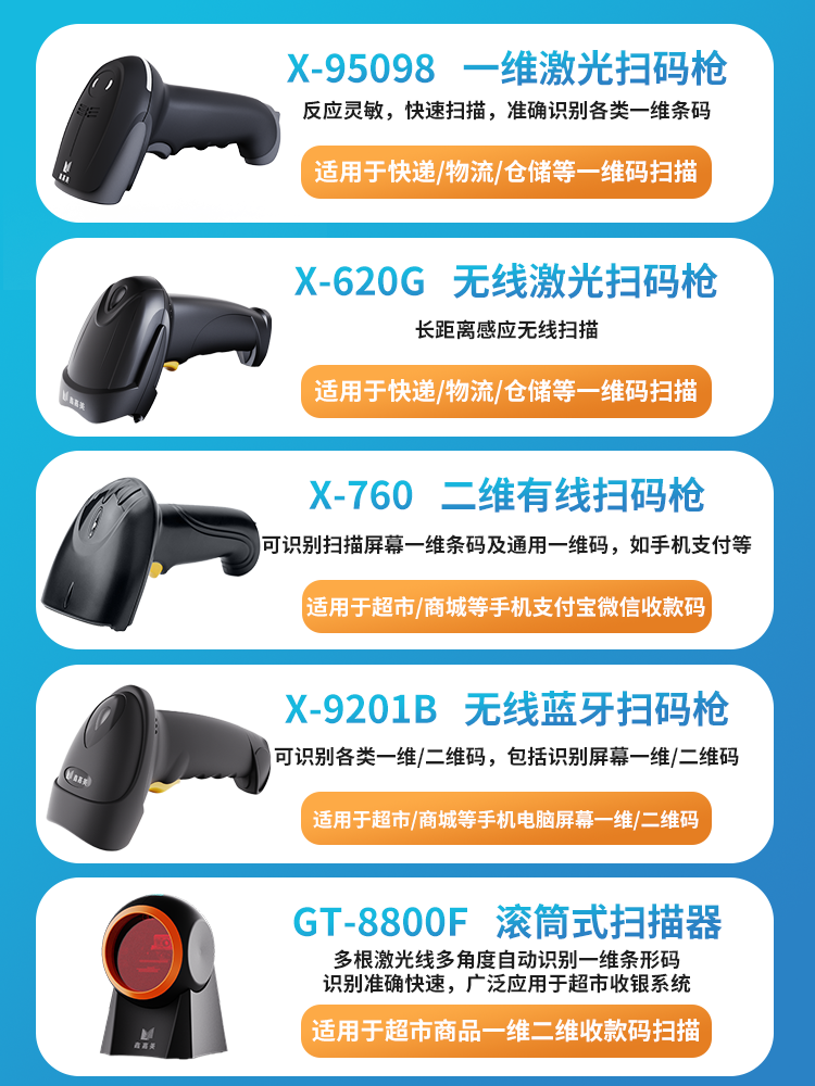 XinJiamei Scanner One-D Laser General-purpose Warehouse Shopping Code Code Code Code Single Inventory Scanner