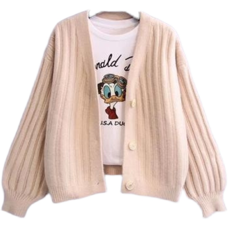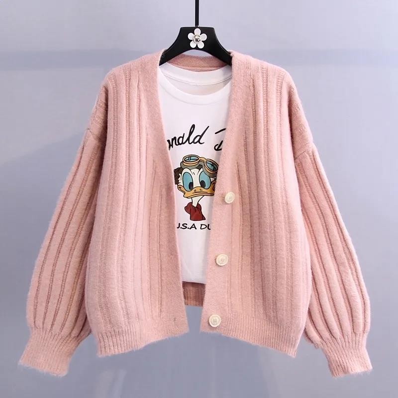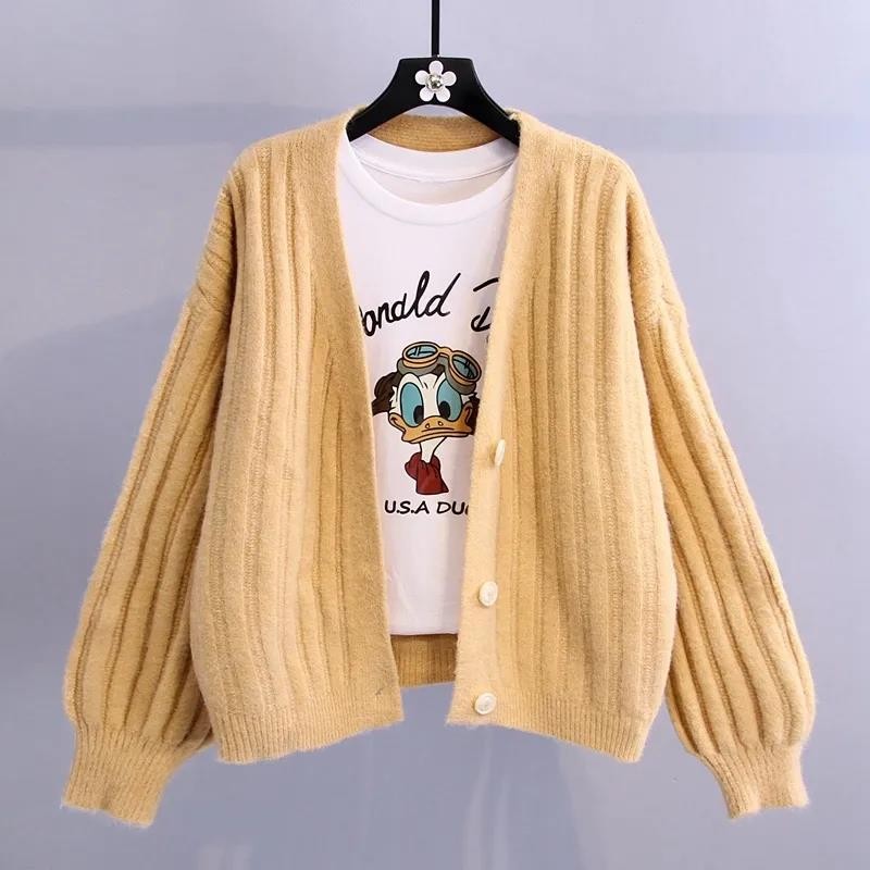 Small frescoed sweater cardio-hoodie jacket woman 2022 spring autumn new Korean version of the less lazy and lazy outside wearing a knitted sweatshirt