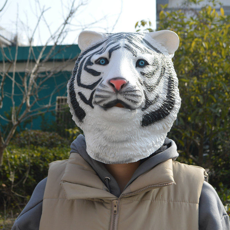 Tiger mask animal latex mask Halloween horror party mask funny tiger year will perform old tiger headsets
