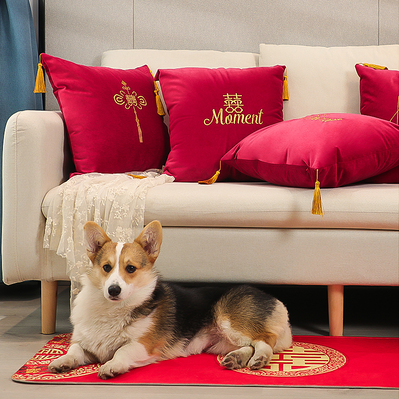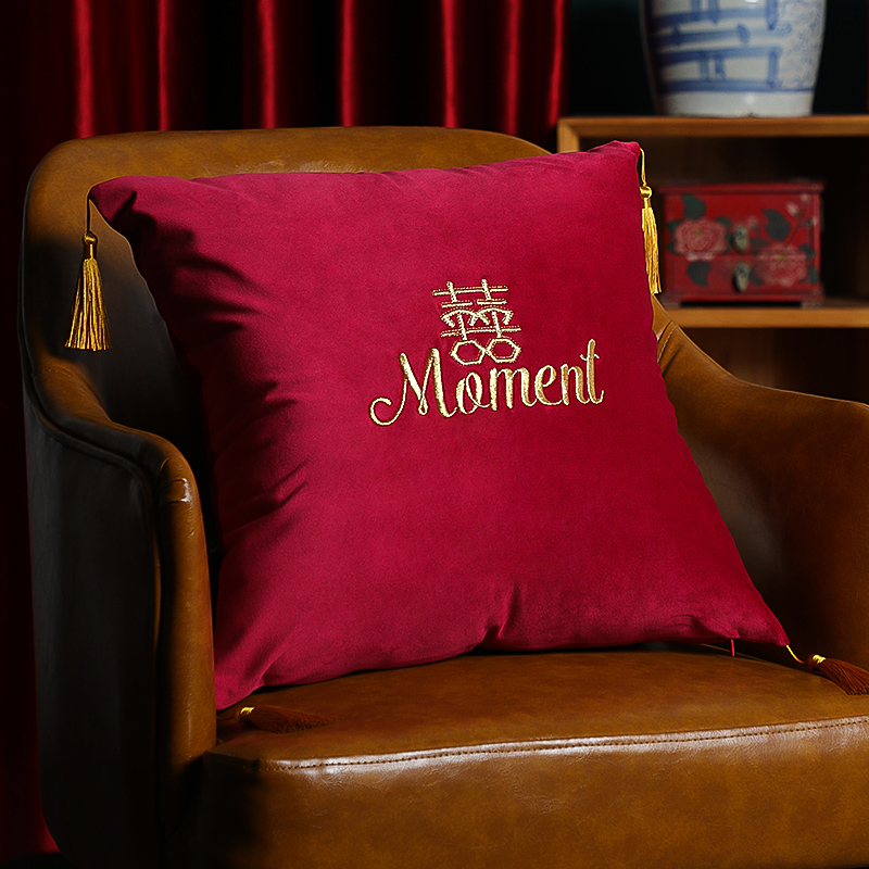 Double happiness_1 pair of pillows (including pillow core)Chinese knot_wine red pillow_2 pieces (including pillow simple square happiness_wine red pillow_2 (including pillow double happiness moment_wine red pillow_2 (including pillow)