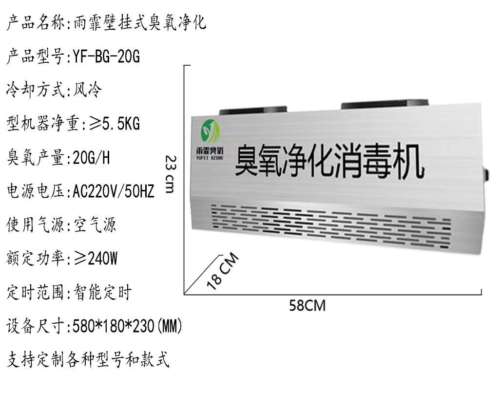 Ozone generator wall-mounted food factory workshop hospital air purification deodorization disinfection and sterilization machine quartz tube machine