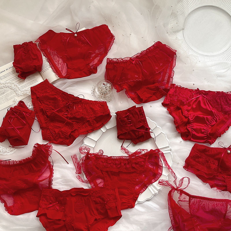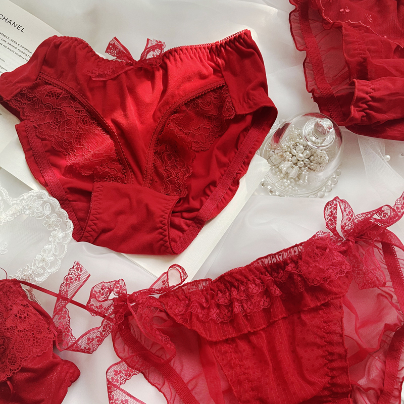 Girls underwear big red Benming year lace sweet and comfortable modal brushed cotton crotch mid-waist couple gift
