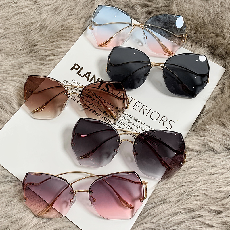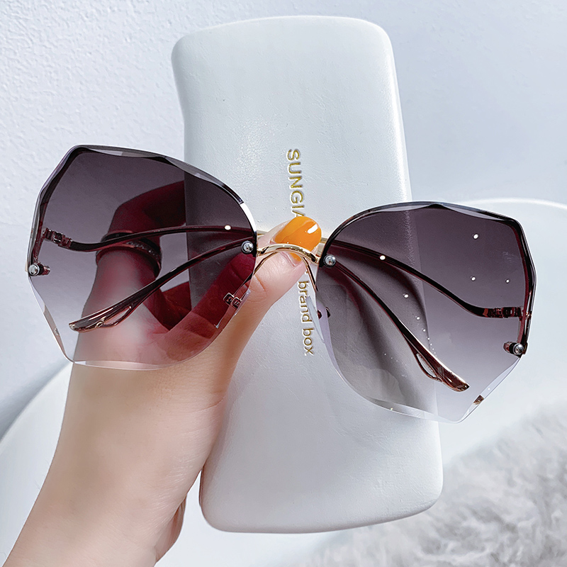 2022 new rimless cut edge sunglasses female Korean version of the trendy high-end net red retro anti-UV sunglasses