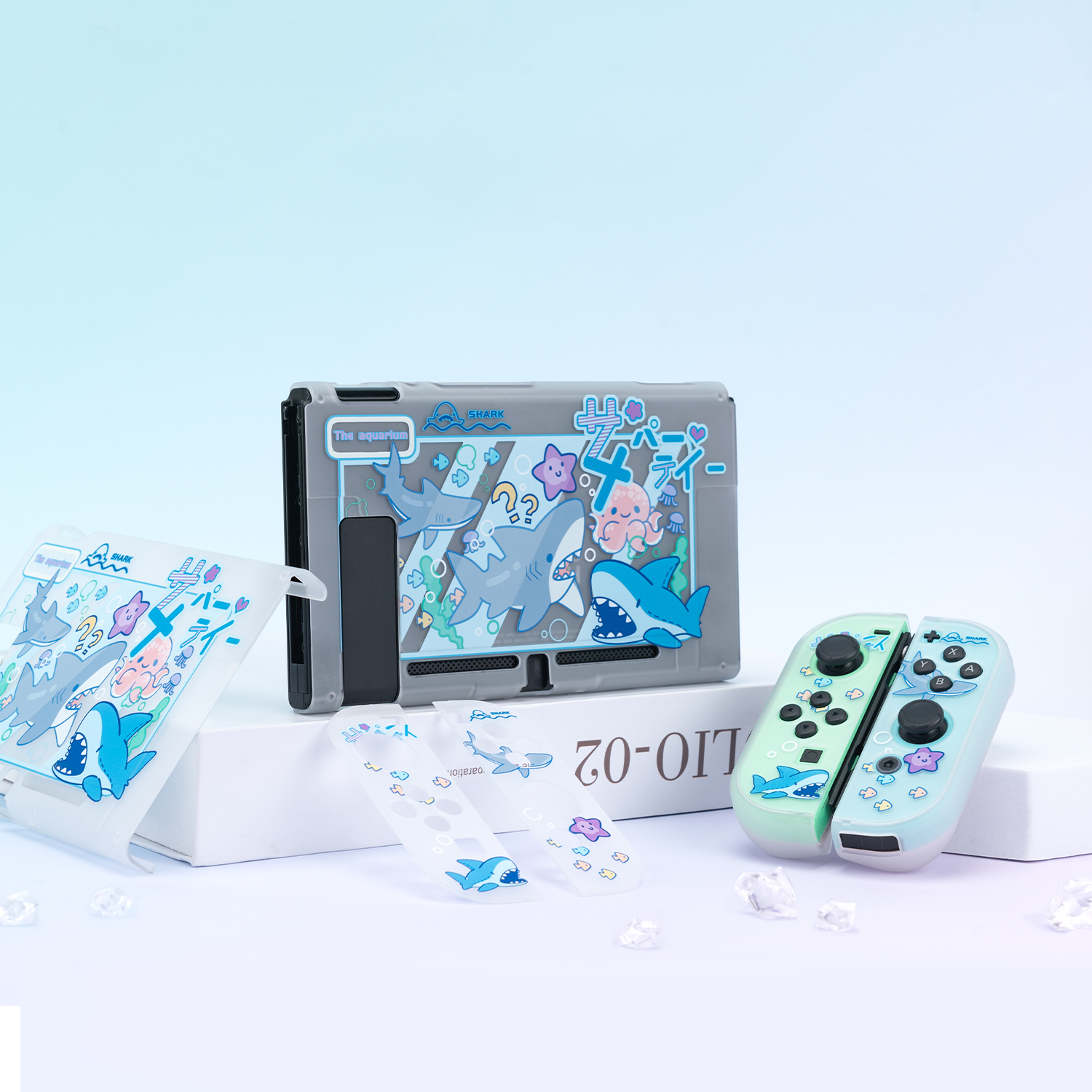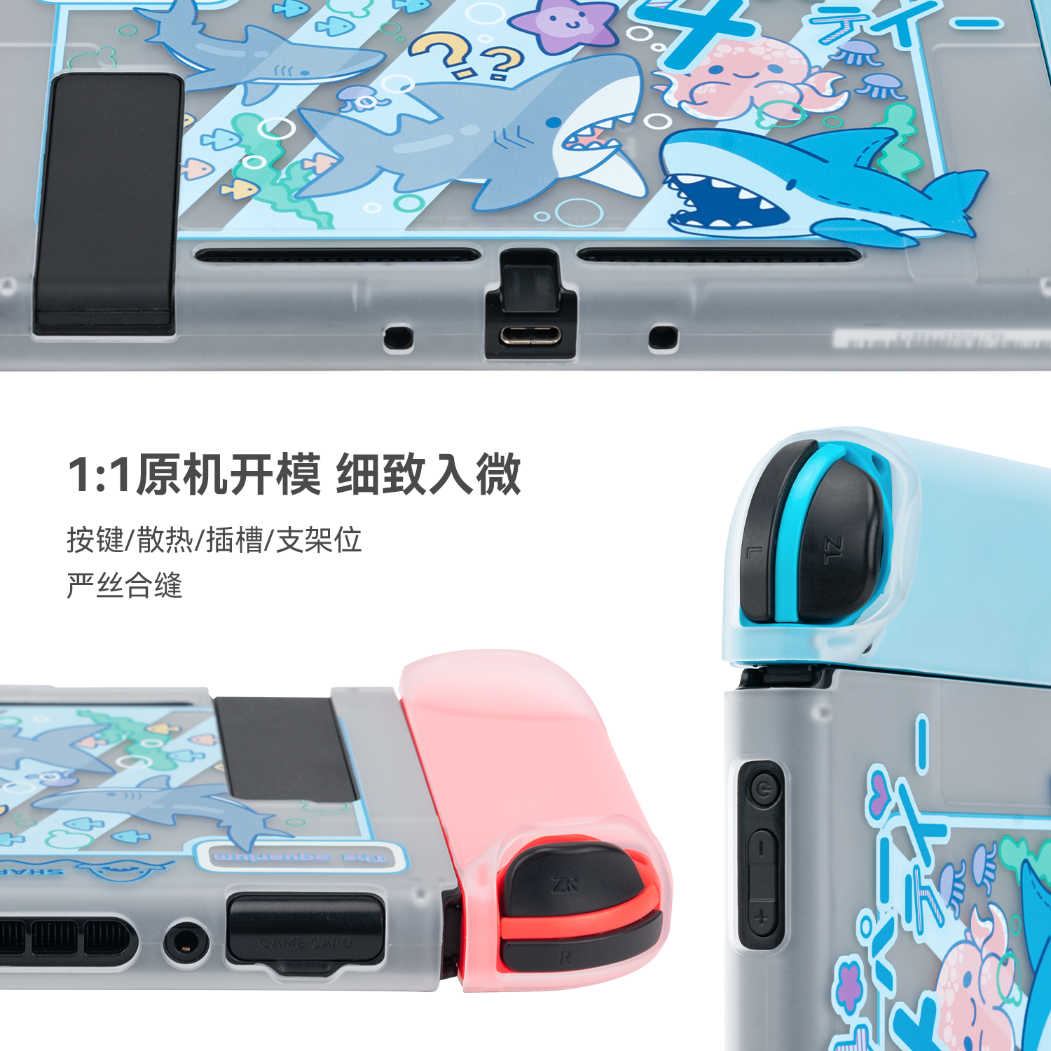 Jixiang Nintendo switch protective shell hard shell shark shark party base protective shell translucent matte split protective cover joycon handle cover NS protective cover drop-proof portable accessories -