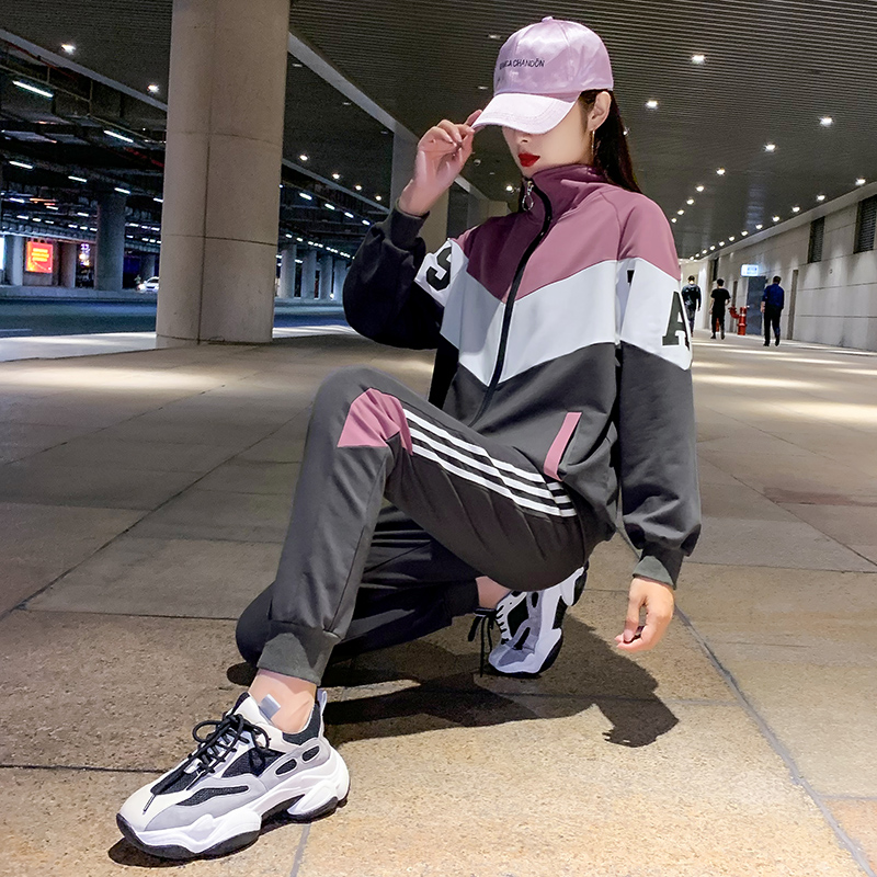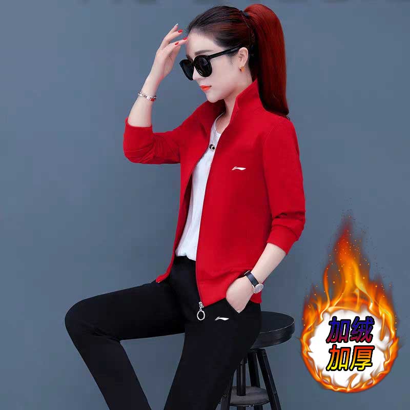 Li Ning VIP sports suit women's spring autumn season 2021 large size size loose long sleeve thick cotton T three sets for running casual wear