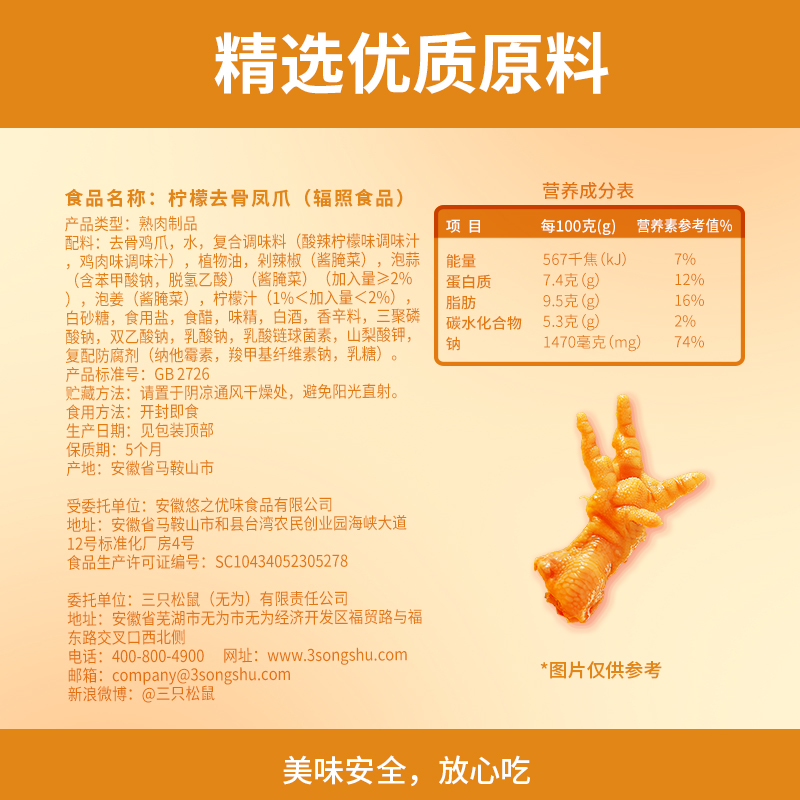 New product (three squirrels _ boneless chicken claw 200g) sour and spicy boneless chicken claw small snack lemon pickled pepper cooked food