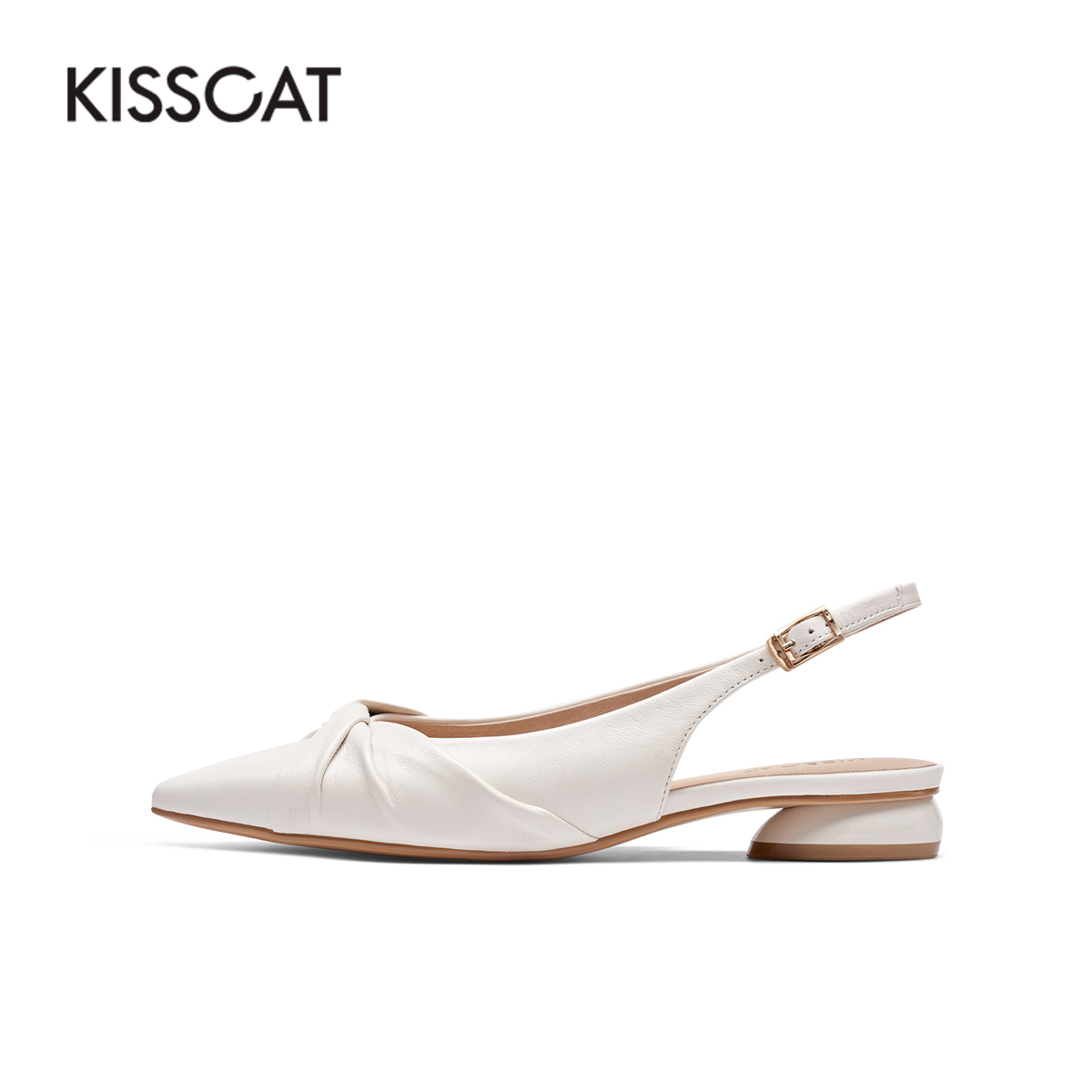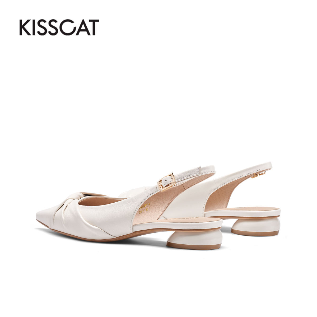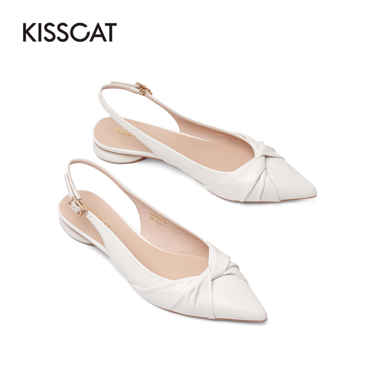 Kissing Cat Lady Shoes 2022 Spring Summer New Genuine Leather Rear Empty Sandals Comfort Pointy Flat Bottom Light Mouth Single Shoe Woman