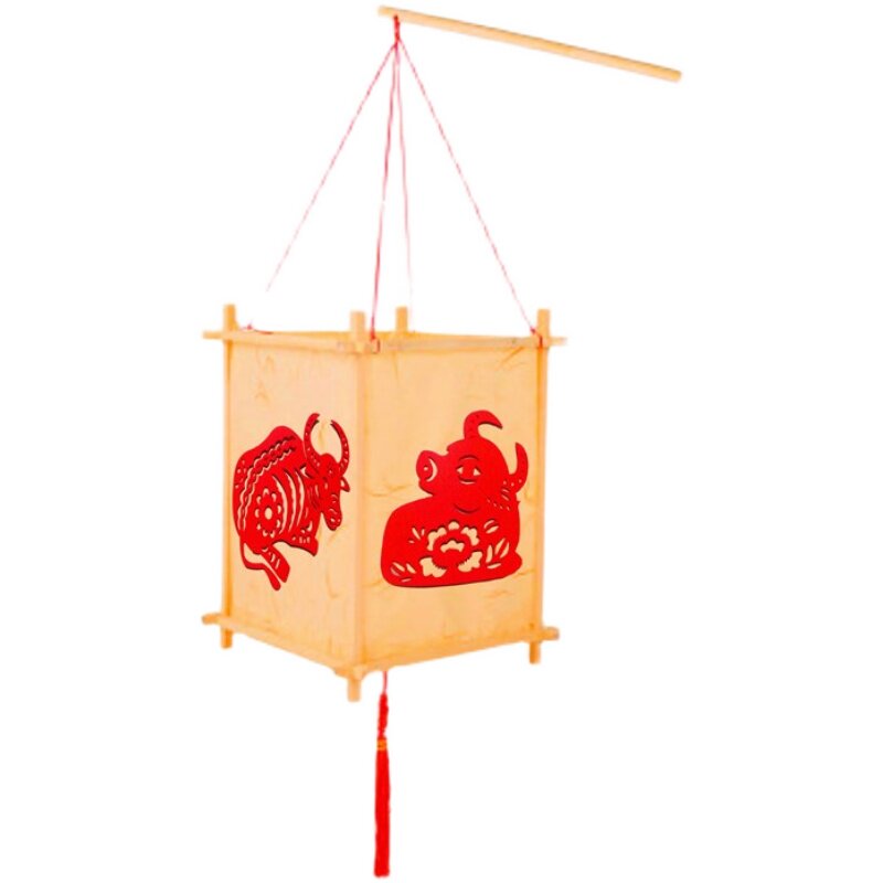 Handmade of lanterns made semi-finished flower paper diy national wind hand-held wood square wood