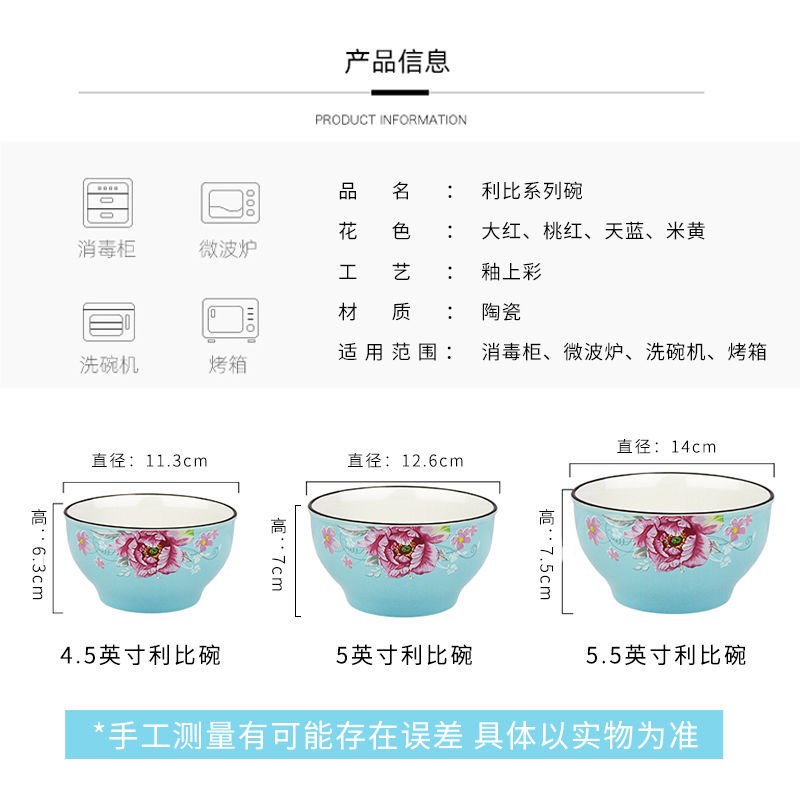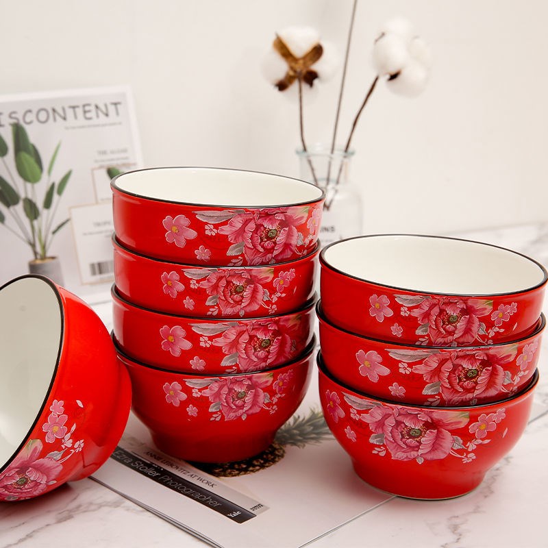 Ceramic Large Bowl Bowl Ceramics Household Bowl Li Be Glaze Bowl Set Thick Preventive Dispensert Rice Bowl Soup