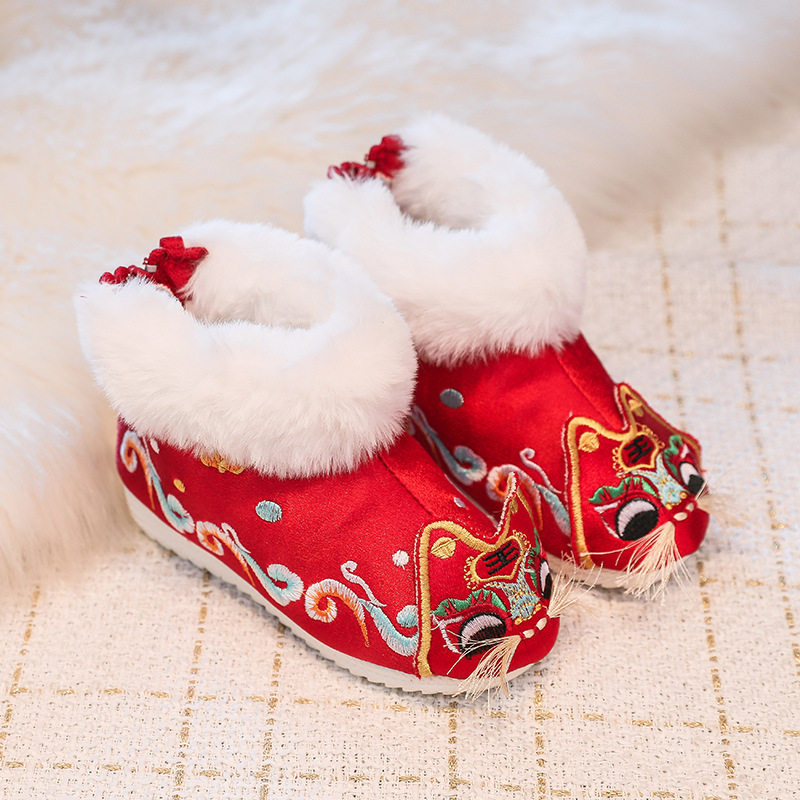 Tiger head shoes women's treasure children's New Year's shoes New Year shoes plus velvet winter high-end matching Hanfu ancient shoes