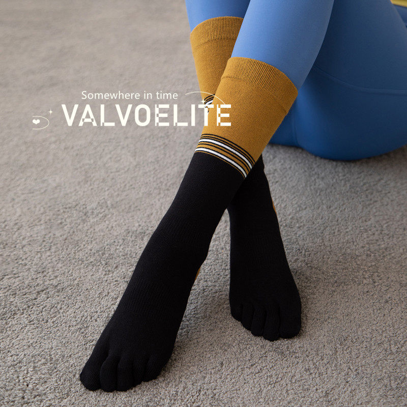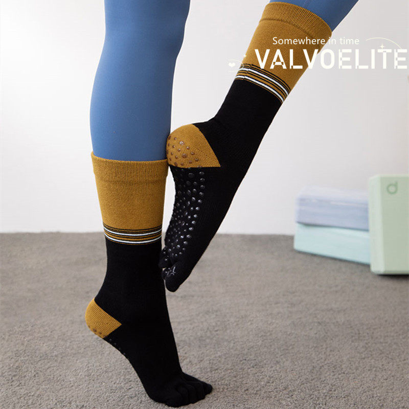 VALVOELITE Middle Cylinder Yoga Socks Female Non-slip Fitness Sports Yoga Professional Prati Short Five Finger Socks