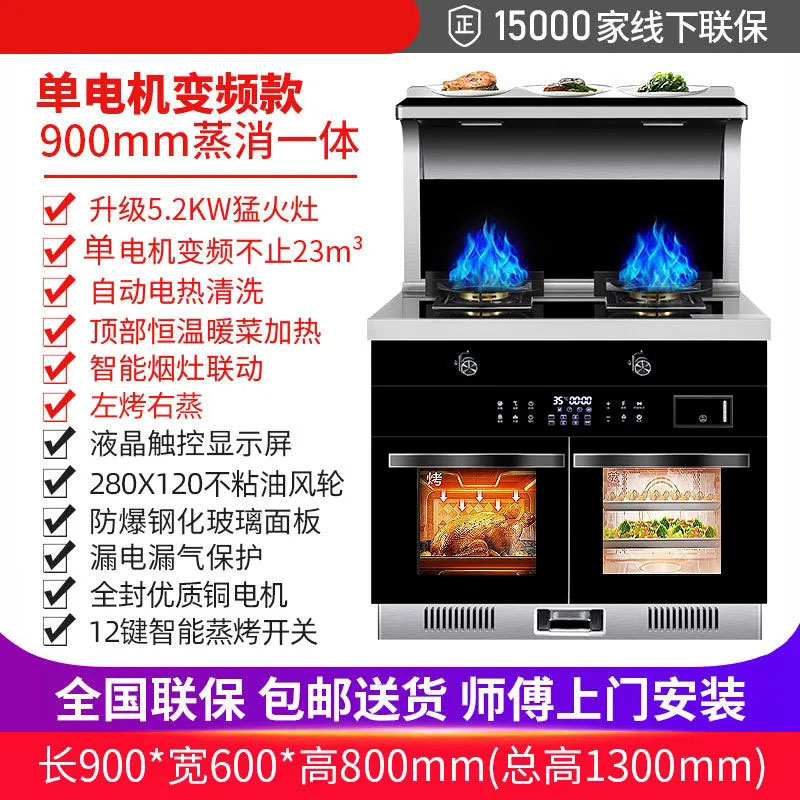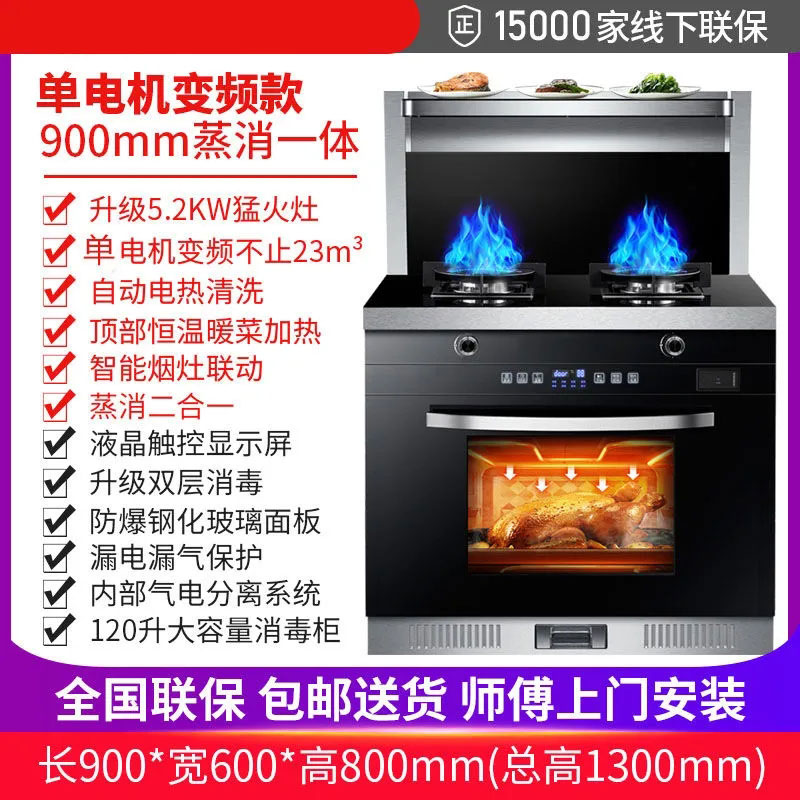 Integrated Kamado Household Range Hood Gas Stove Disinfection Cabinet Steam Roast All Dual Motor Steaming and Baking Side Suction Environmental Protection