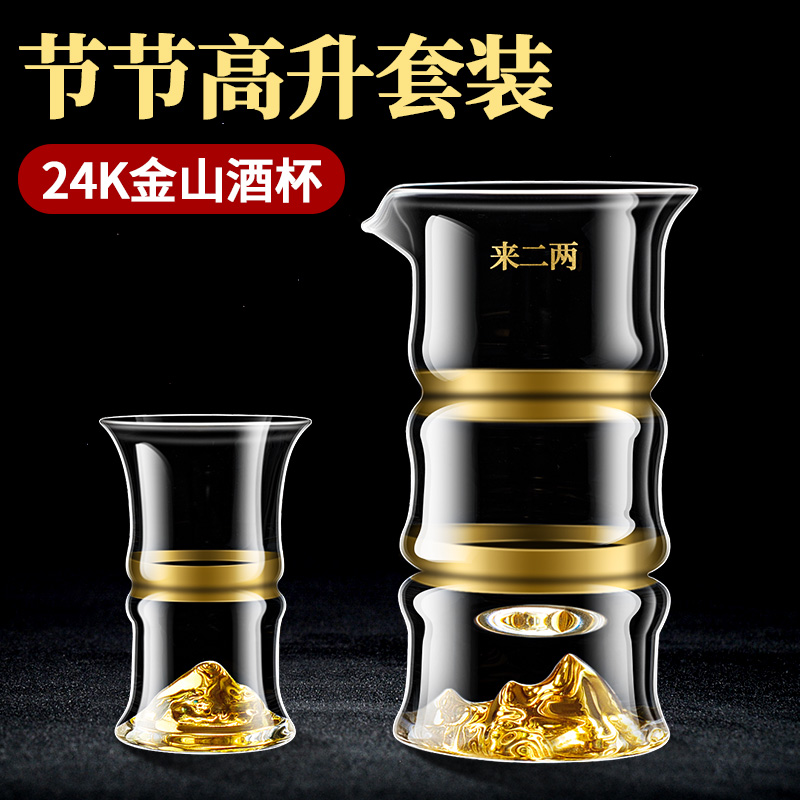 Bamboo cup small white wine glass set crystal glass Jinshan wine dispenser 100ml household two or two wine set advanced