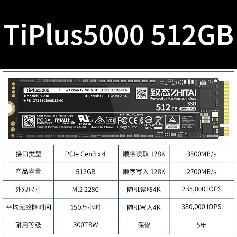 ZhiTai to titanium SC001 TiPlus5000 Yangtze River storage homegrown SSD solid-state hard disc M2 2280