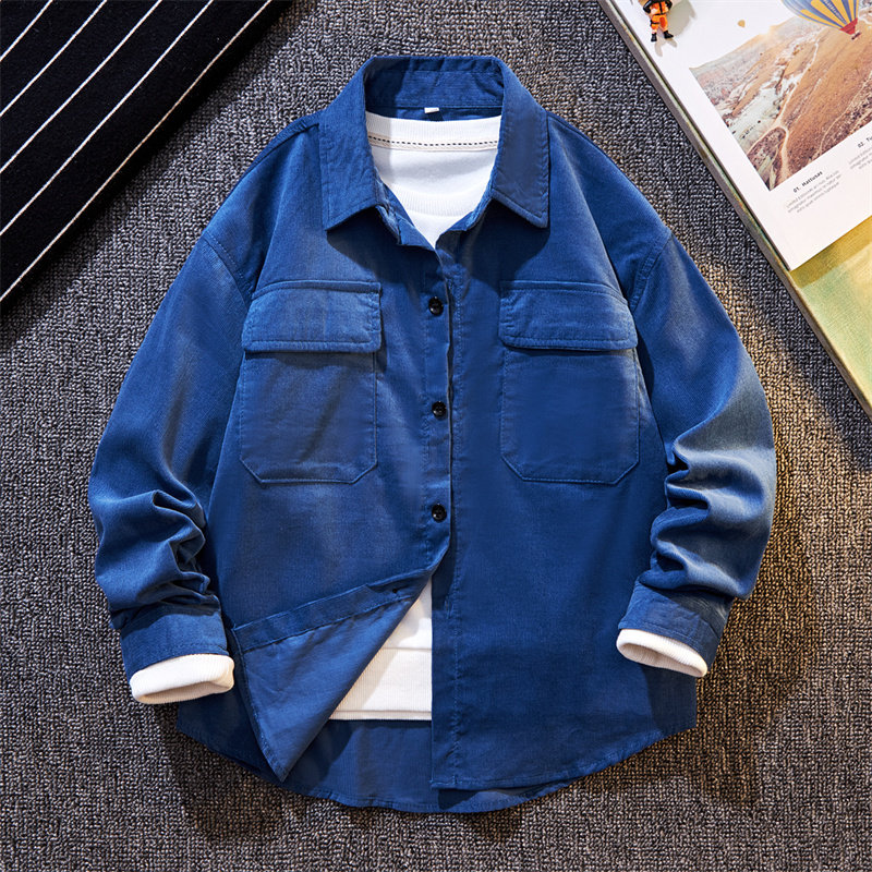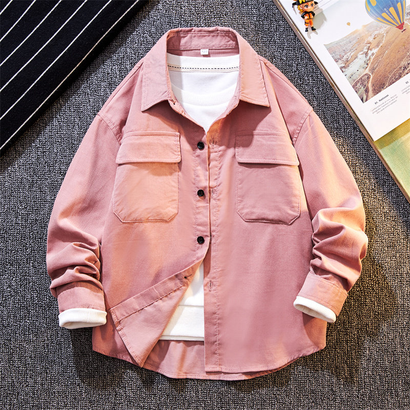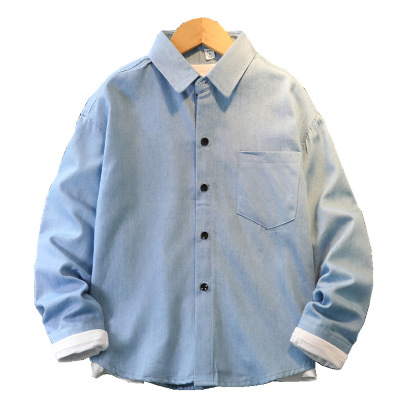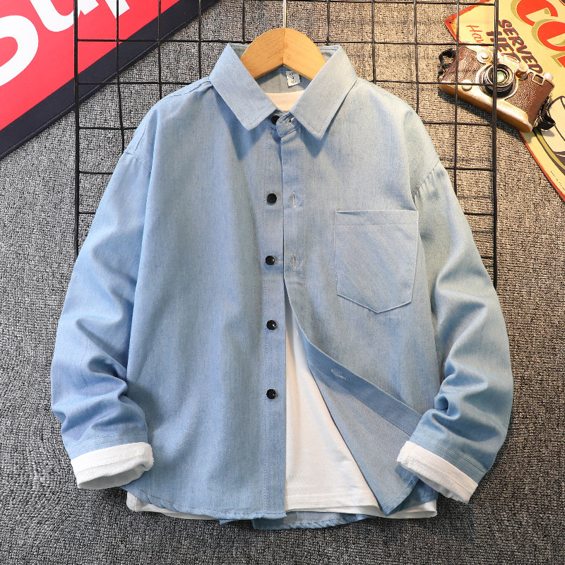 Boys' casual shirts 2022 spring and autumn new middle and big children's solid color shirts long-sleeved children's spring coat boys trendy