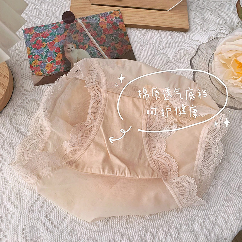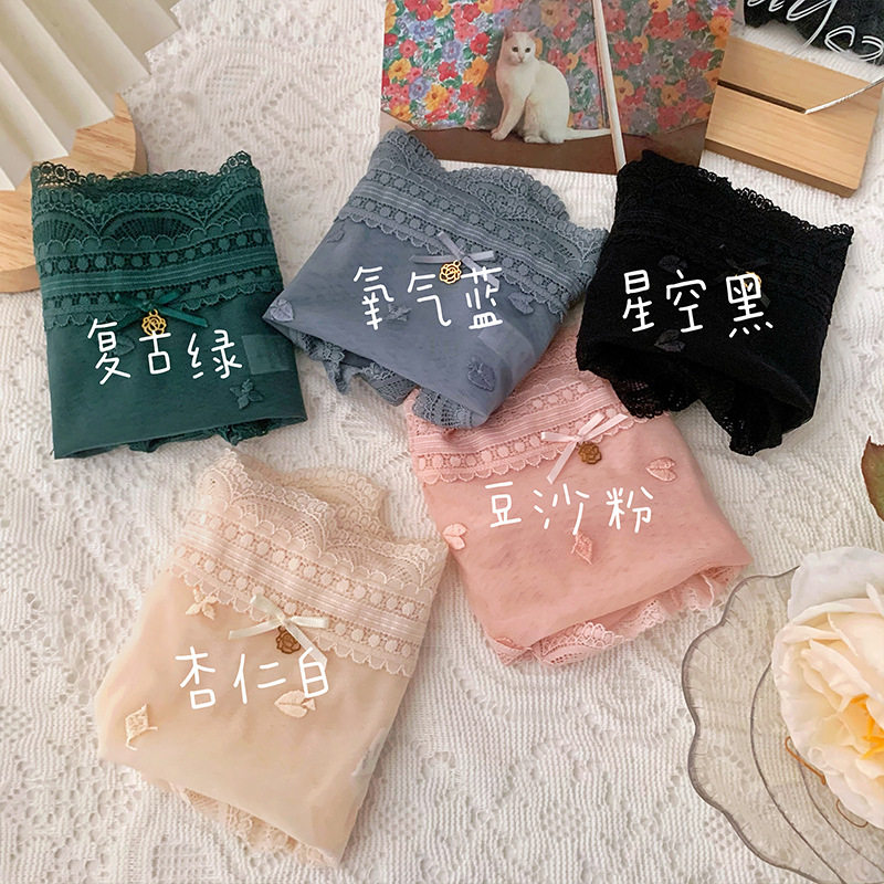 Palace Wind Light Cooked Net Yarn Lace girl Underpants Playing Cards Embroidered breathable cotton crotch Hip Hip Triangle Pants Woman