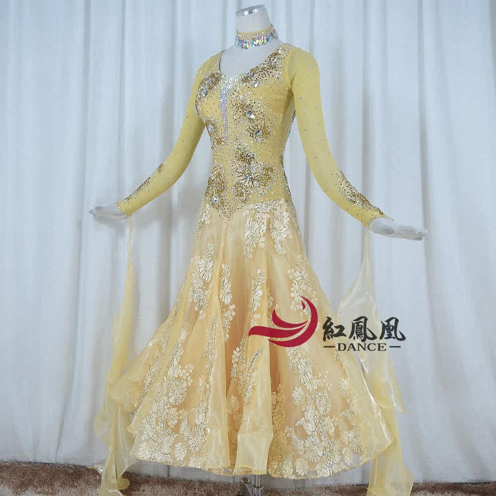 Red Phoenix High-end Luxurious Luxurious Flowers Morden Dance Competition Dresses Custom Waltz Tango Great Swing Dress 1011