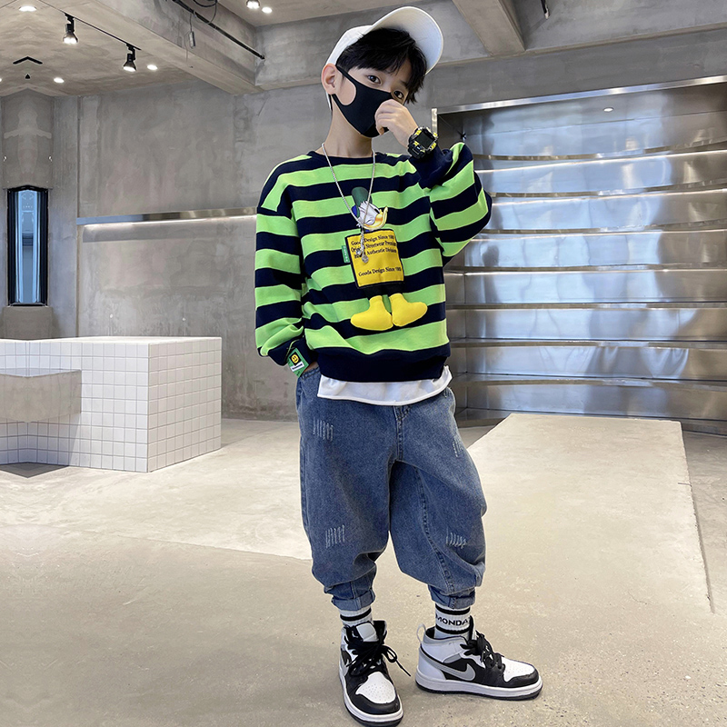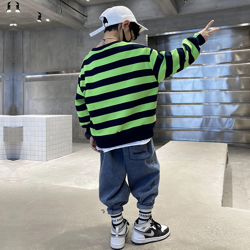 Boys' striped casual tops 2022 new spring and autumn children's spring clothes Western style trendy handsome and fashionable little boy tops