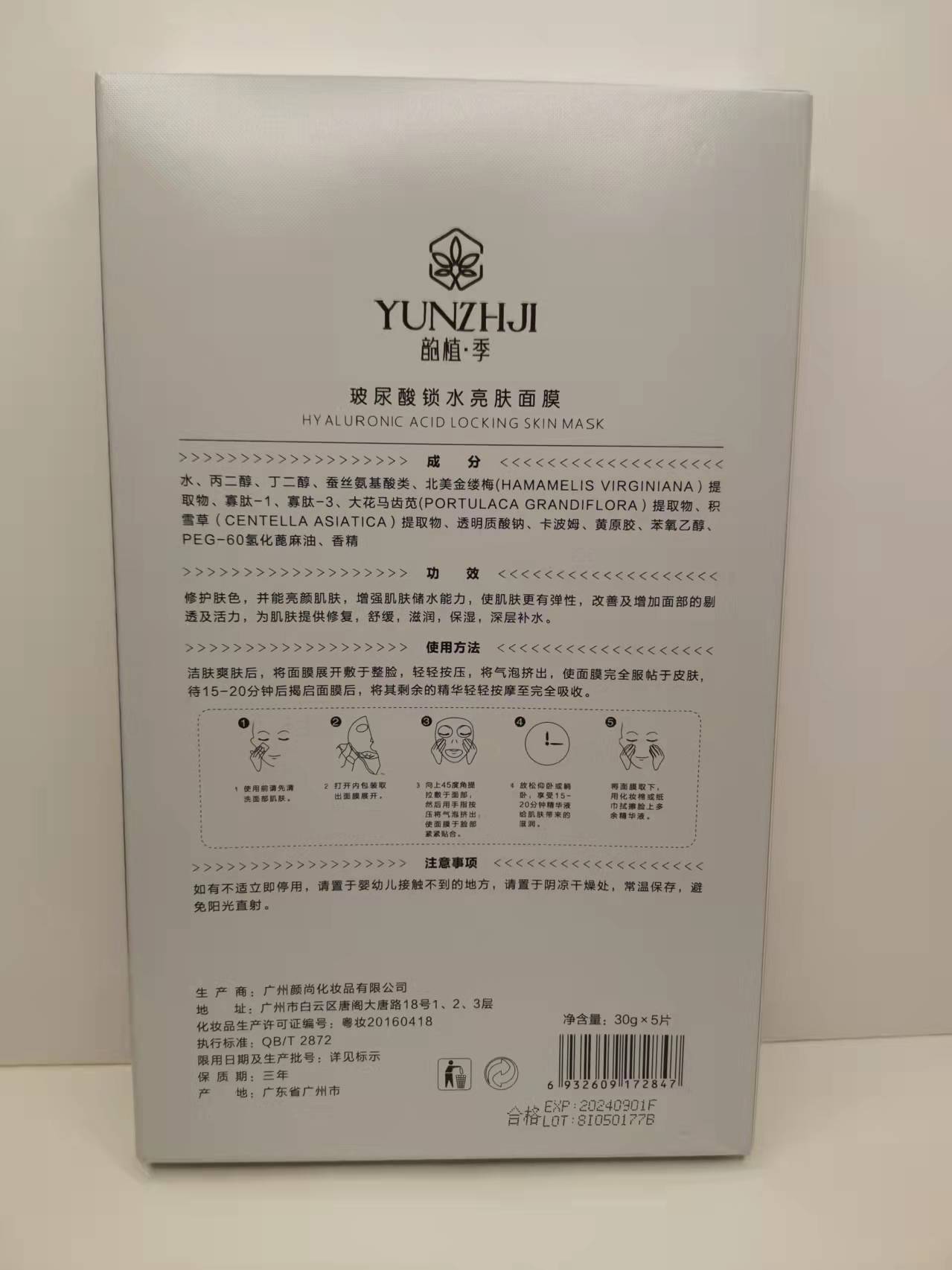 Yunzhiji hyaluronic acid lock water brightening skin whitening moisturizing moisturizing silk ultra-thin mask