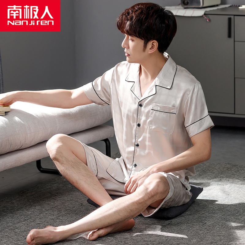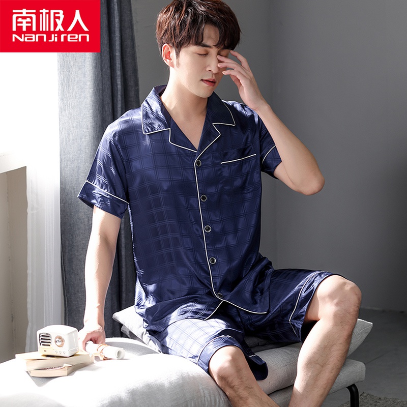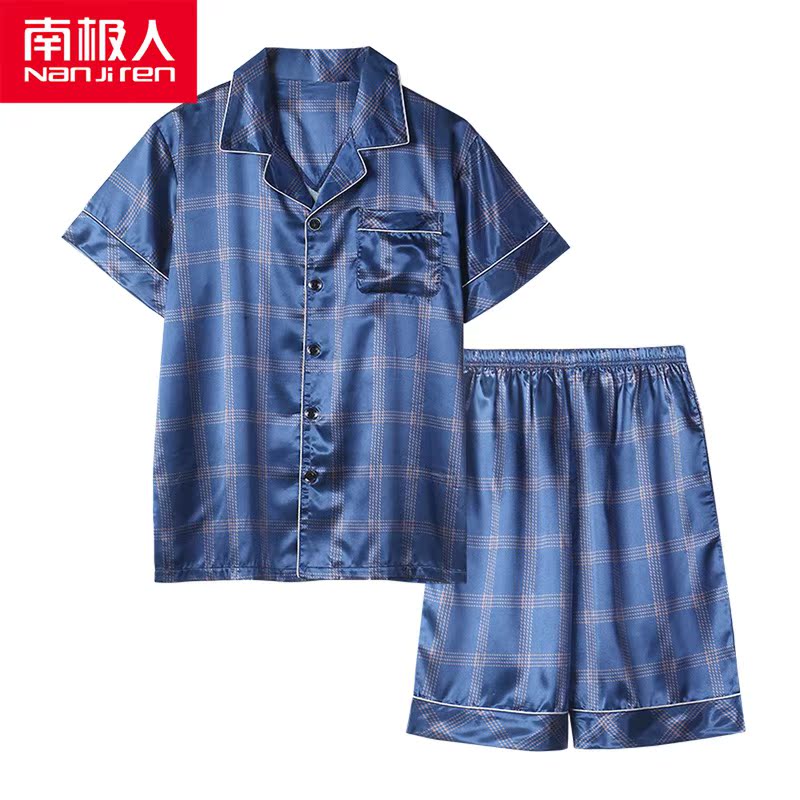 Pajamas men's summer summer ice silk short-sleeved shorts silk home clothes men's simulation silk thin section large size suit