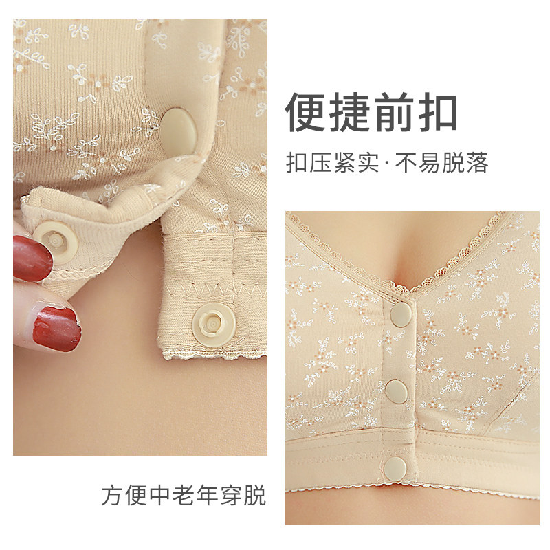 Mom Lingerie Women Bra Bra No Steel Ring Old Age Large Size Pure Cotton Bra Comfort Slim Front Button Adjustment