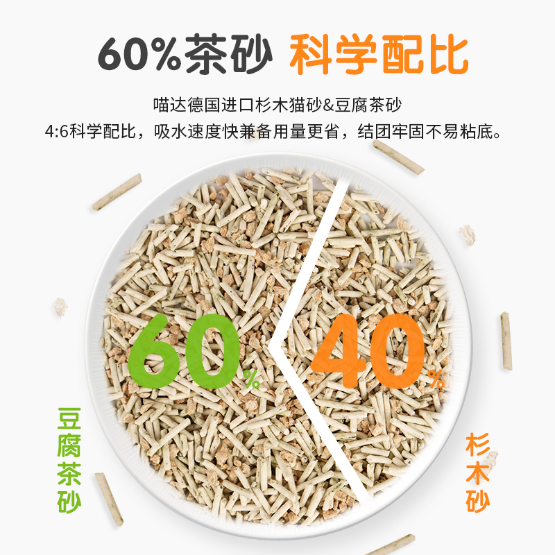 Meoda German mixed fir carolon cat sand tofu sand tea sand TE60 dust free flushing antibacterial deodorization 2 3kg
