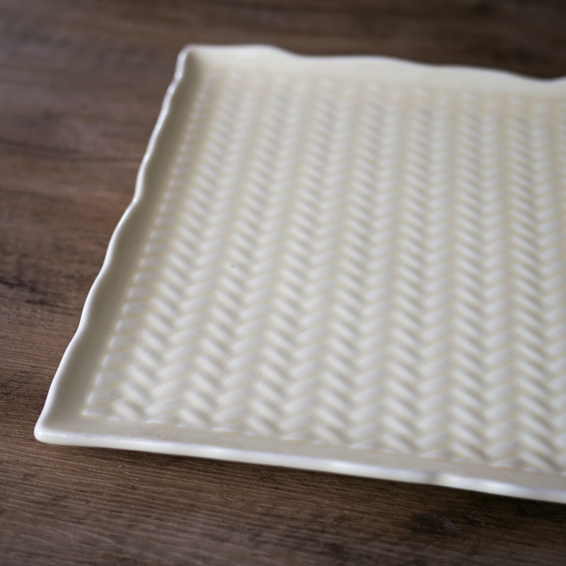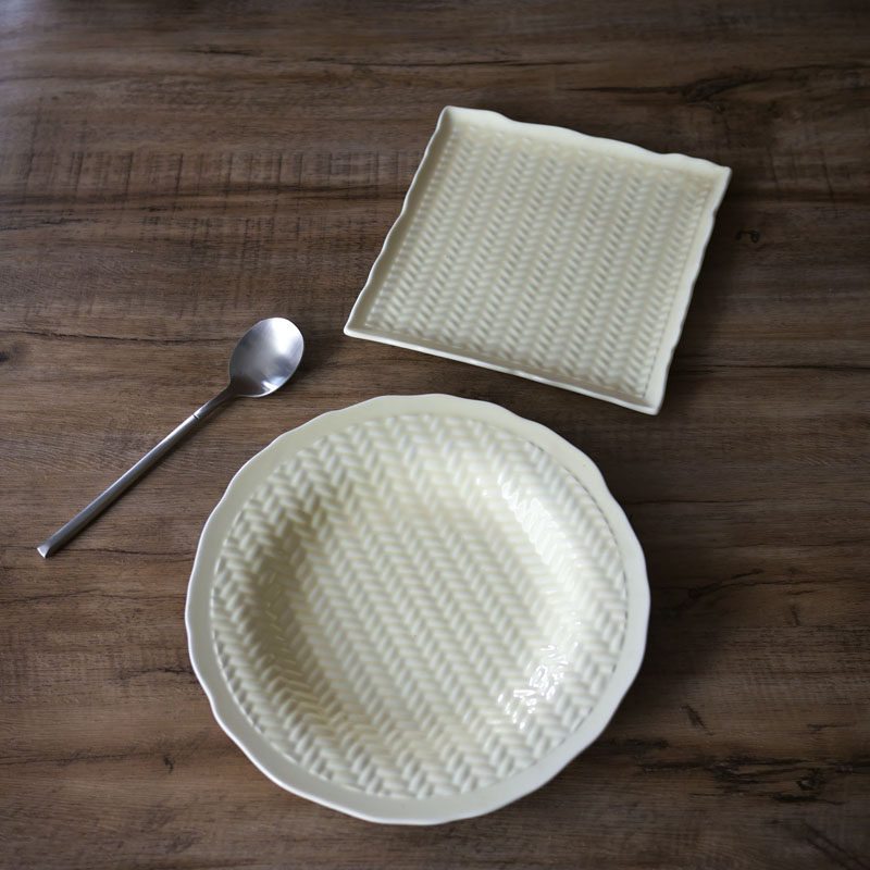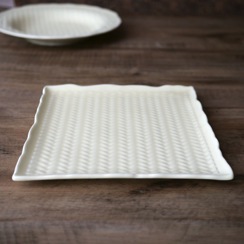 Milk yellow wool line deep plate milk yellow wool line grain square plate