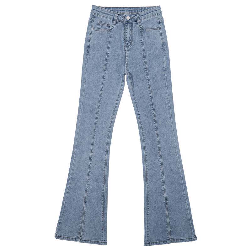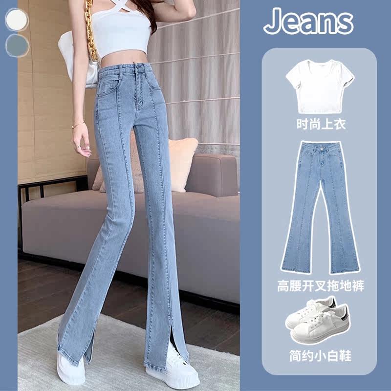 Horn jeans Women 2022 Spring new small sub fashion High waist open fork straight cylinder slim micro horn pants