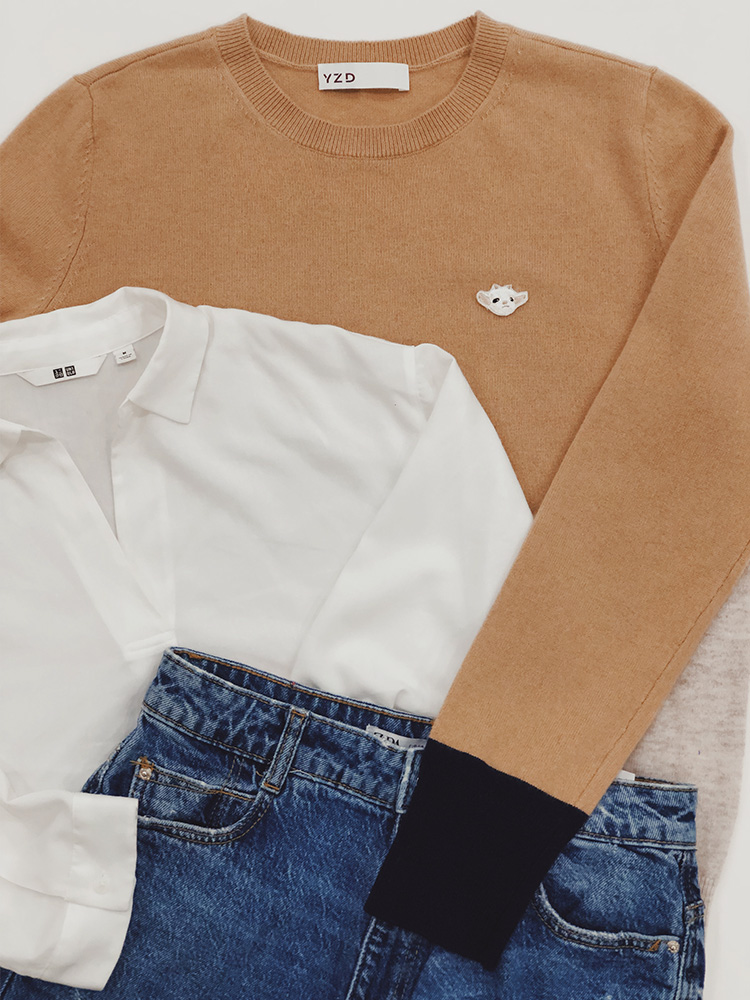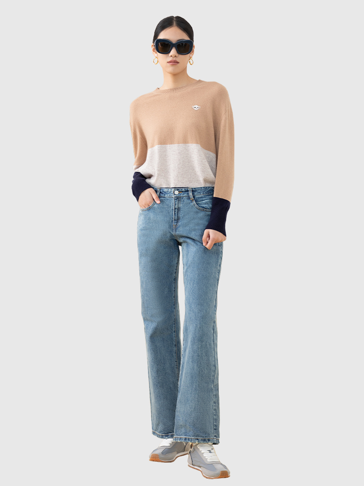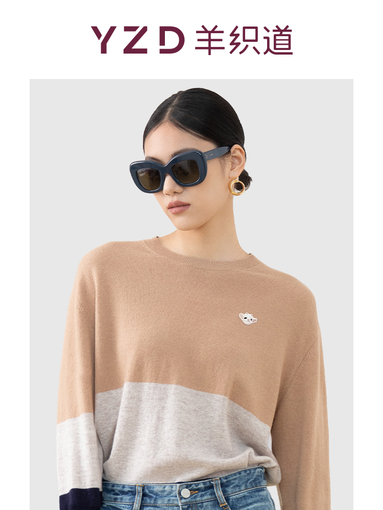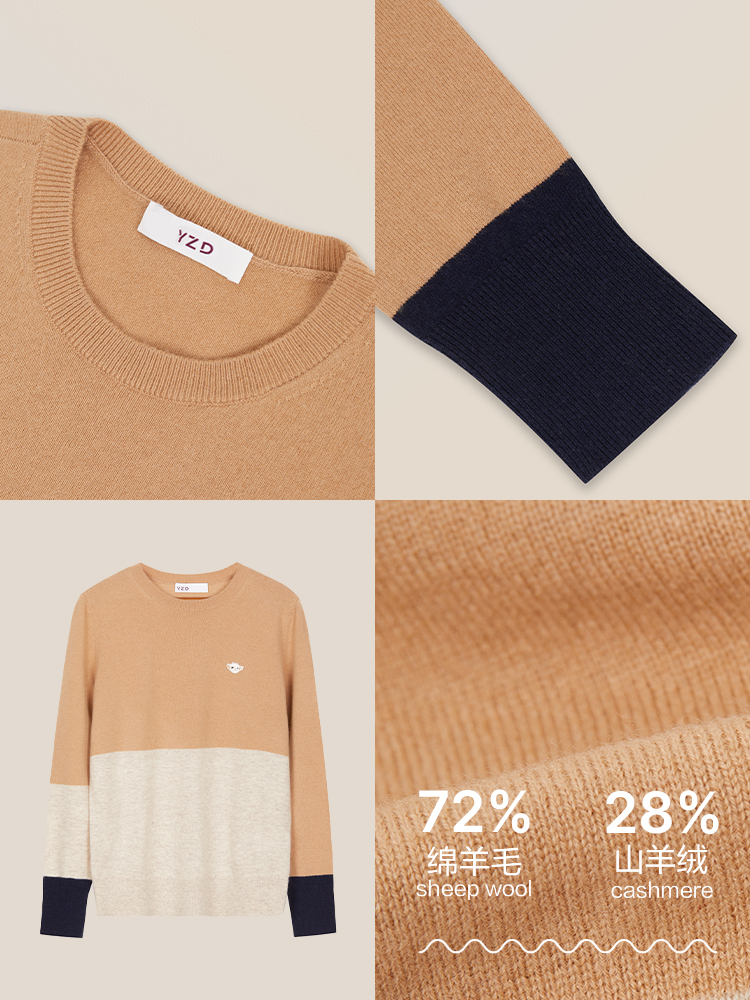 YZD Sheep Weaving Road Daily with cashmere round neck wool comfortable light luxury top blended stitching pullover knitting
