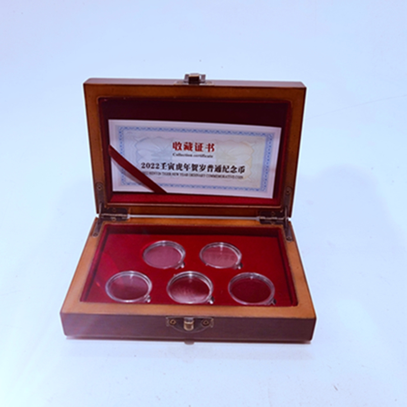 Year of the Tiger Commemorative Coin Collection Box Protection Box 2022 Tiger Coin 10 Yuan Two Round 27mm Packaging Five Wooden Boxes