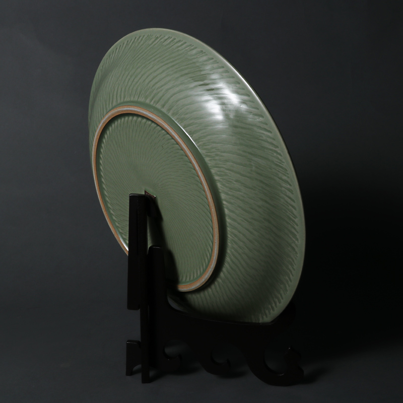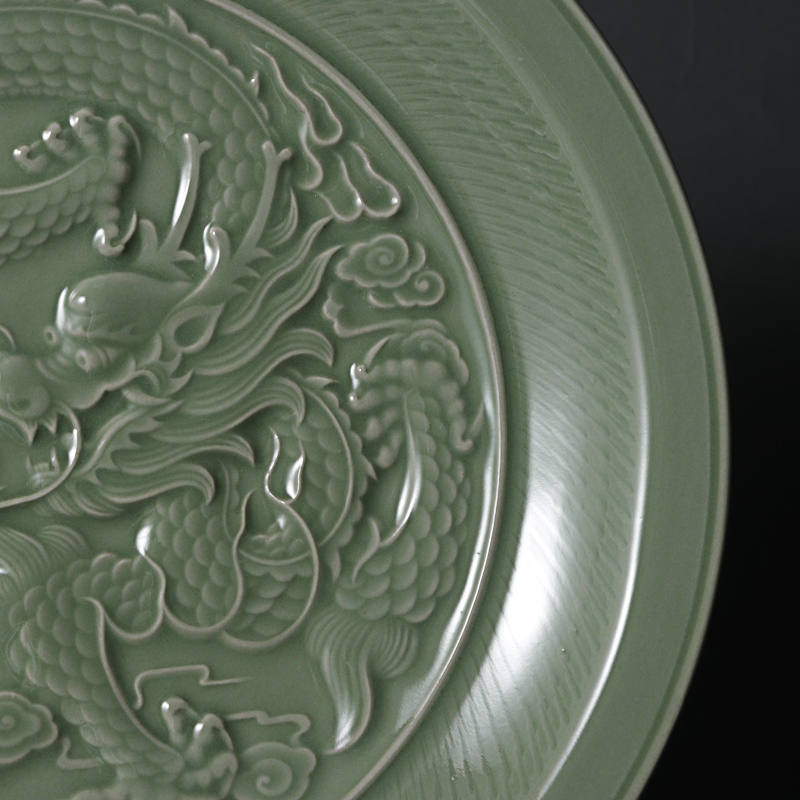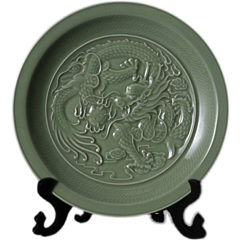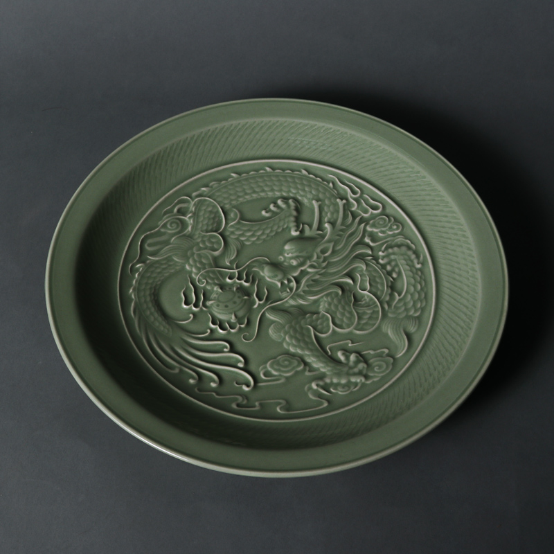 Upper Forest Lake Yue Kiln Green Porcelain Dragon Grain Tray Chinese Home Wedding Celebration Gift Ceramic Pendulum 32cm Secret Porcelain Porcelain Dish