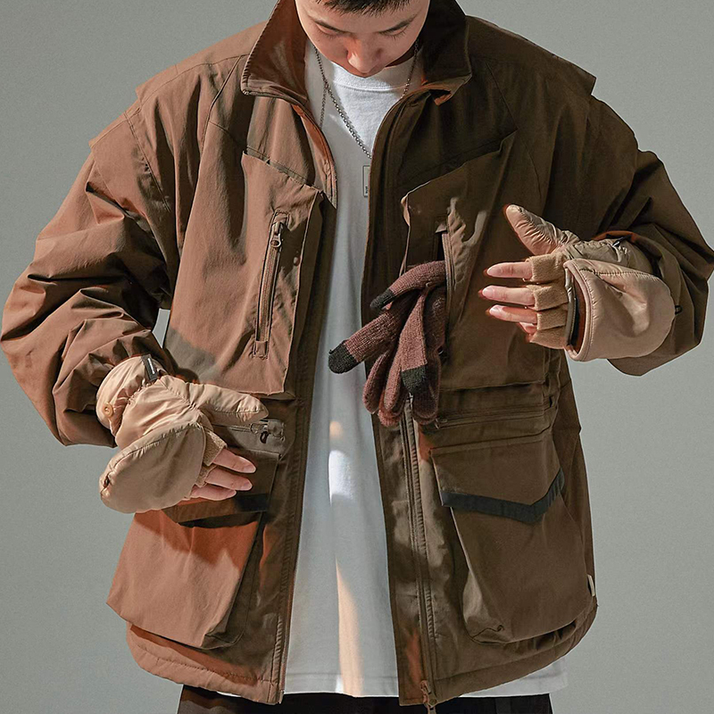 PIN SKTBS 22SS new Japanese casual cotton clothes multi-pocket design stand-up collar warm zipper jacket top