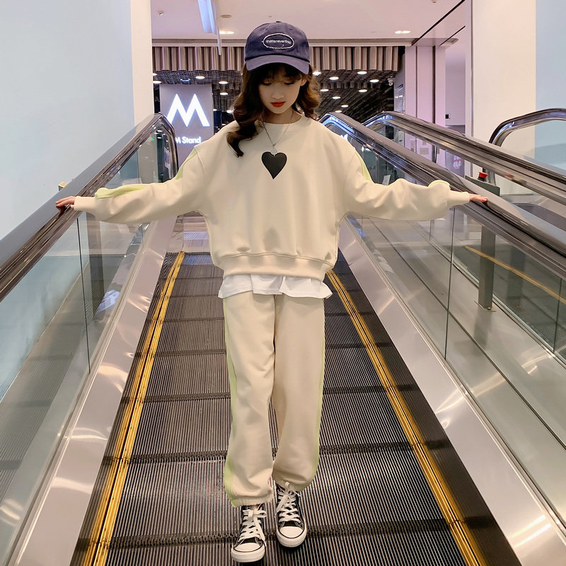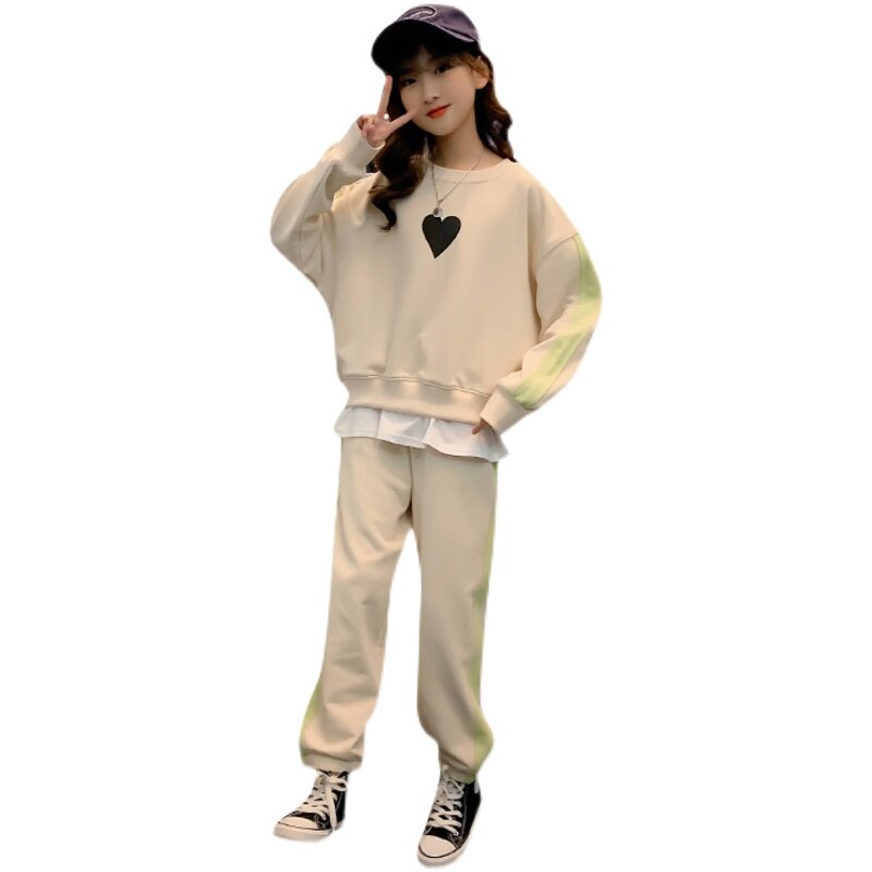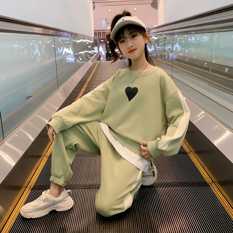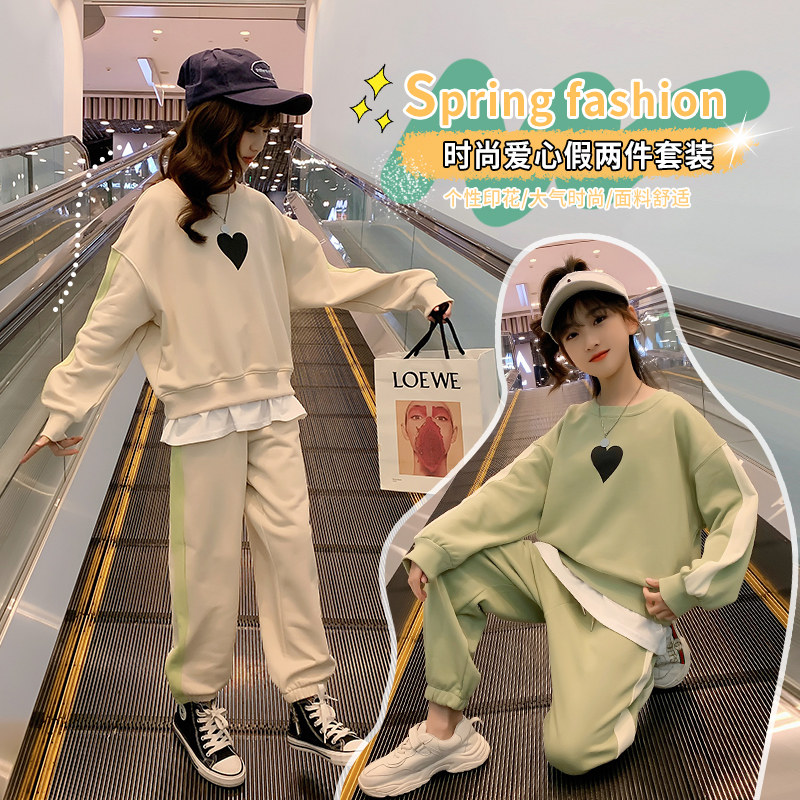 Girls spring suit 2022 new Western style big children's fake two-piece sweater loose clothes children's sports two-piece suit