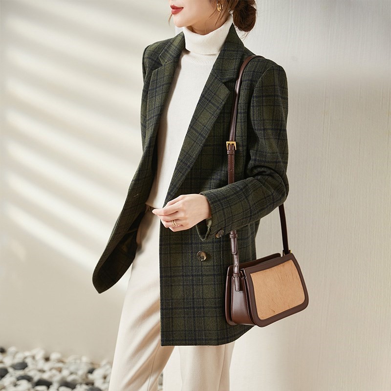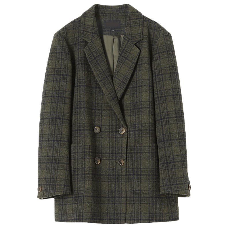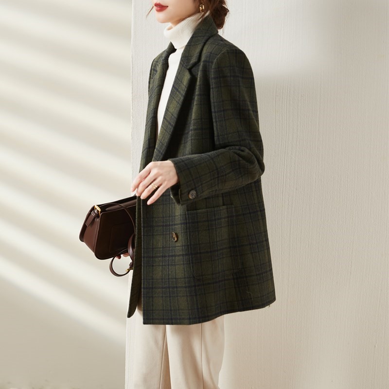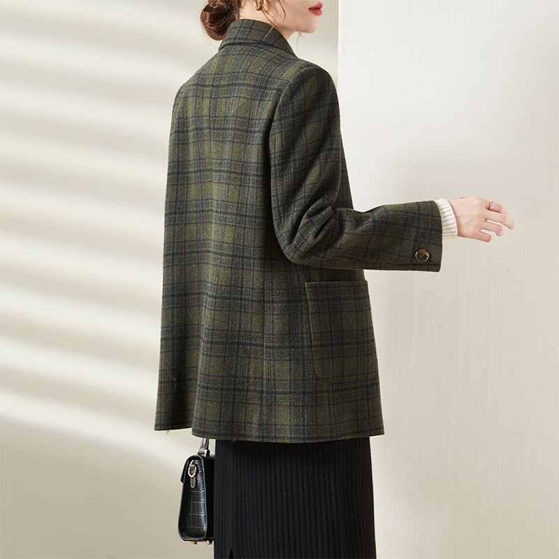 Plaid small suit jacket female casual chic temperament fashion 2022 new iron-free retro green suit top
