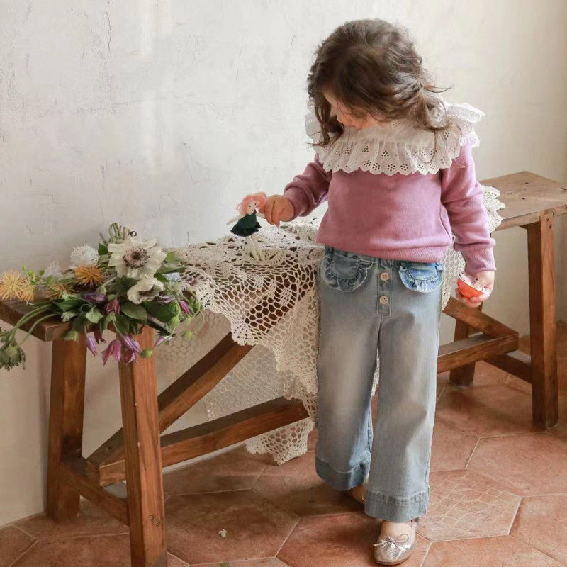 Spot Haobaoma Korean children's clothing imported 2022 spring clothing FLO fashion classic embroidery collar easy to wear sweater