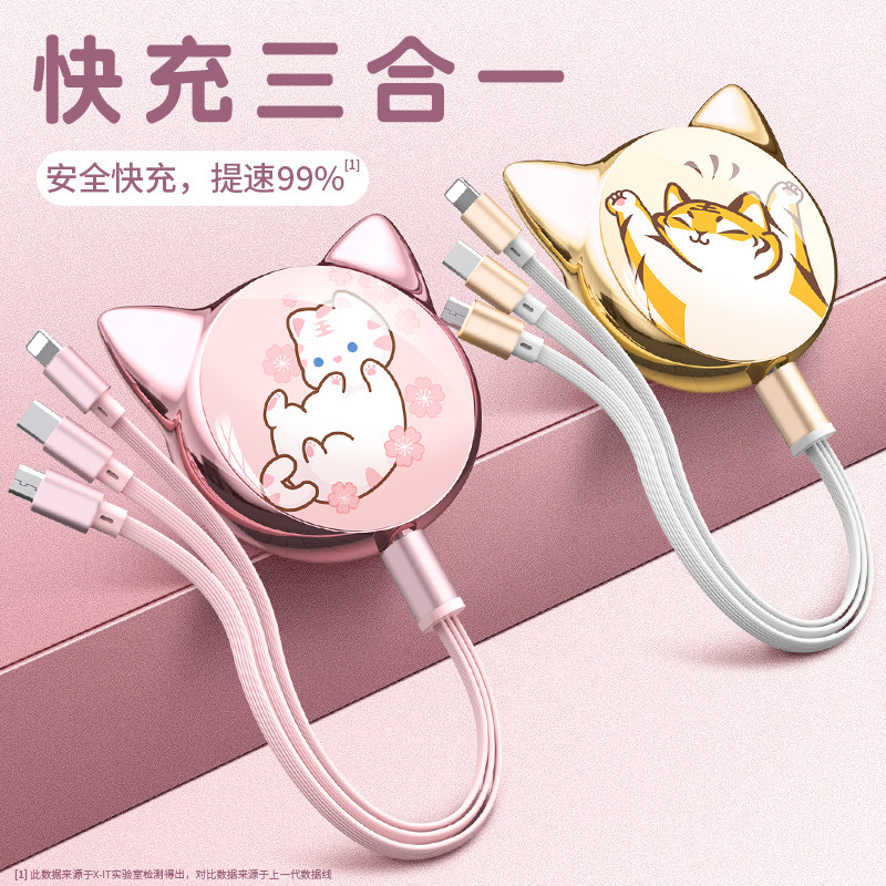 koolook cute tiger data line three-in-one quick charge a three-charge line bulls multifunction triplephone usb suitable for apple iphone Huawei Android Xiaomi generic typec