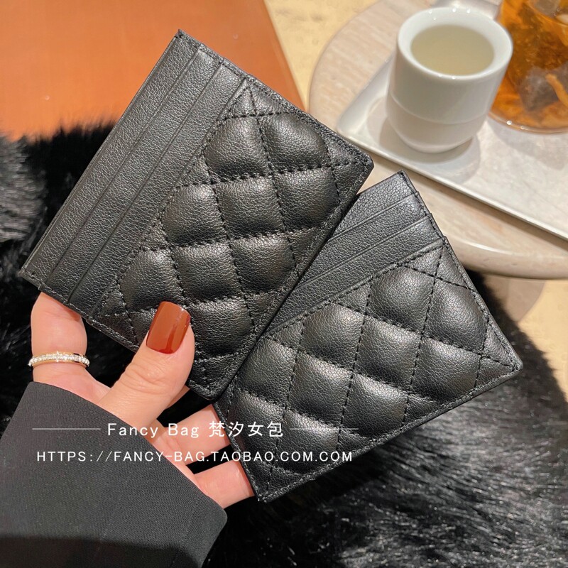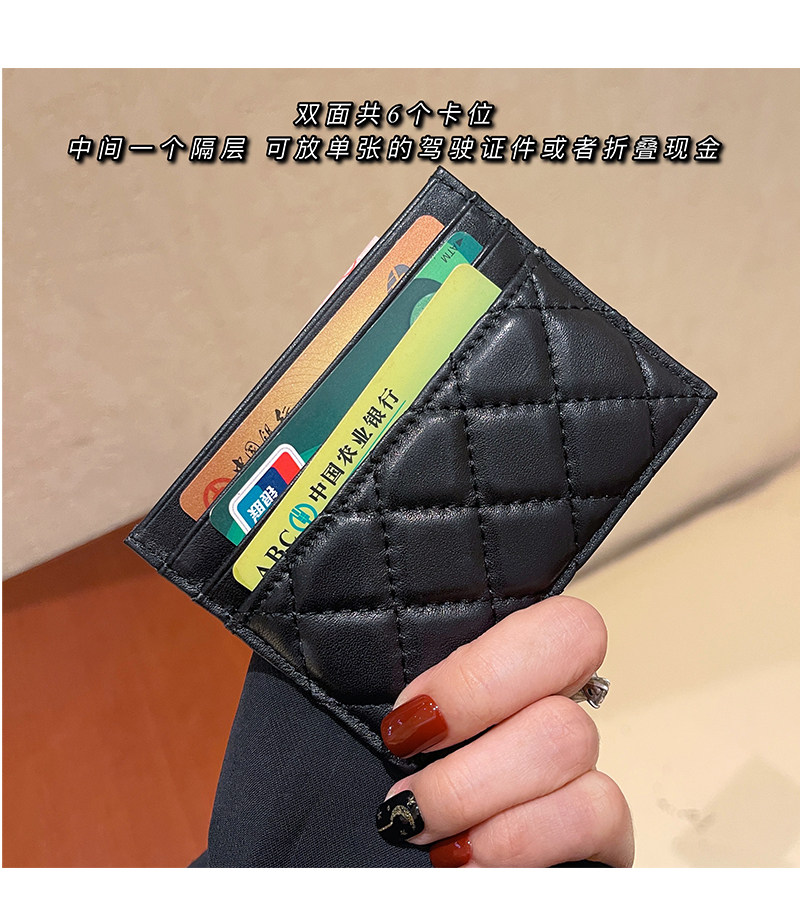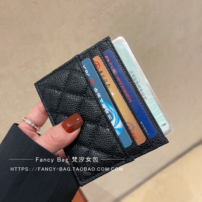 Head Layer Cow Leather Card Bag Woman Small Ultra-thin Rhomboid Caviar Card Clip A Piece Of Card Bag Multi-Position Zero Money Bag