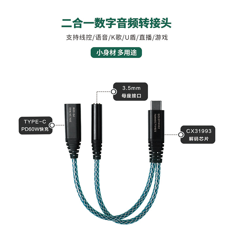 JCALLY Jessee Sound SP6 multifunction two-in-one audio switching line Typec flat head turn 3 5mm headphone hole