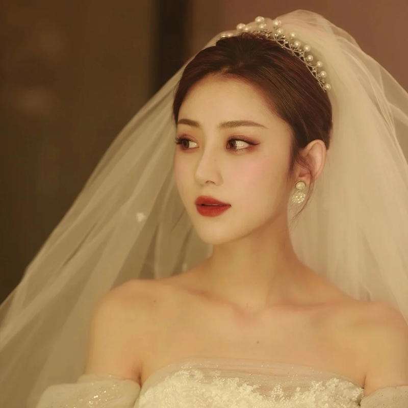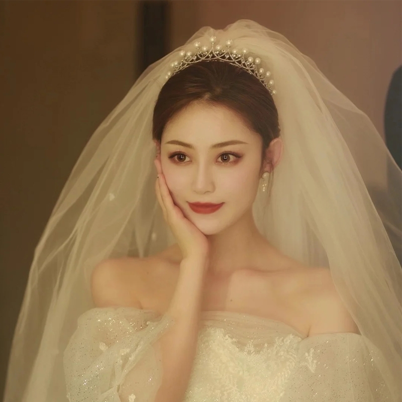 Pearl white yarn bridal headwear High sense main head yarn light wedding dress Three sets of crown fairy qi supersensual law style