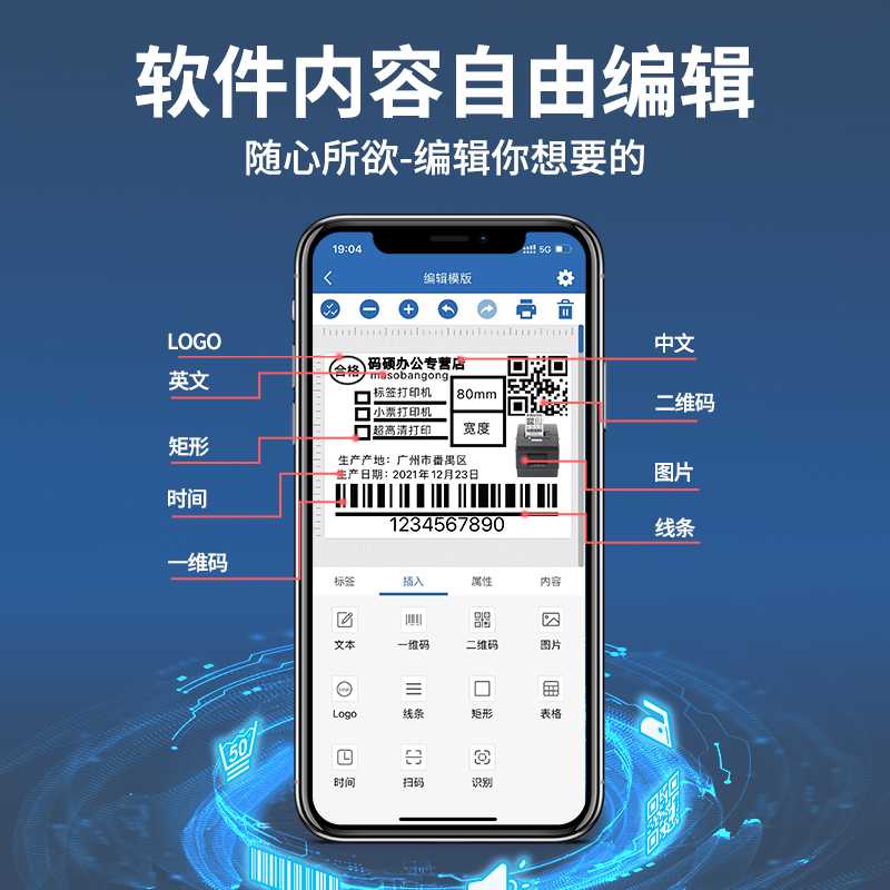 Xinye XP-H500B Label Printer Asia Silver Copper Paper Cable Clothing Tag Certificate of Qualification Washable Mark Price Sticker Label Machine Thermal Transfer Self-adhesive Barcode Carbon Ribbon Thermal Printer