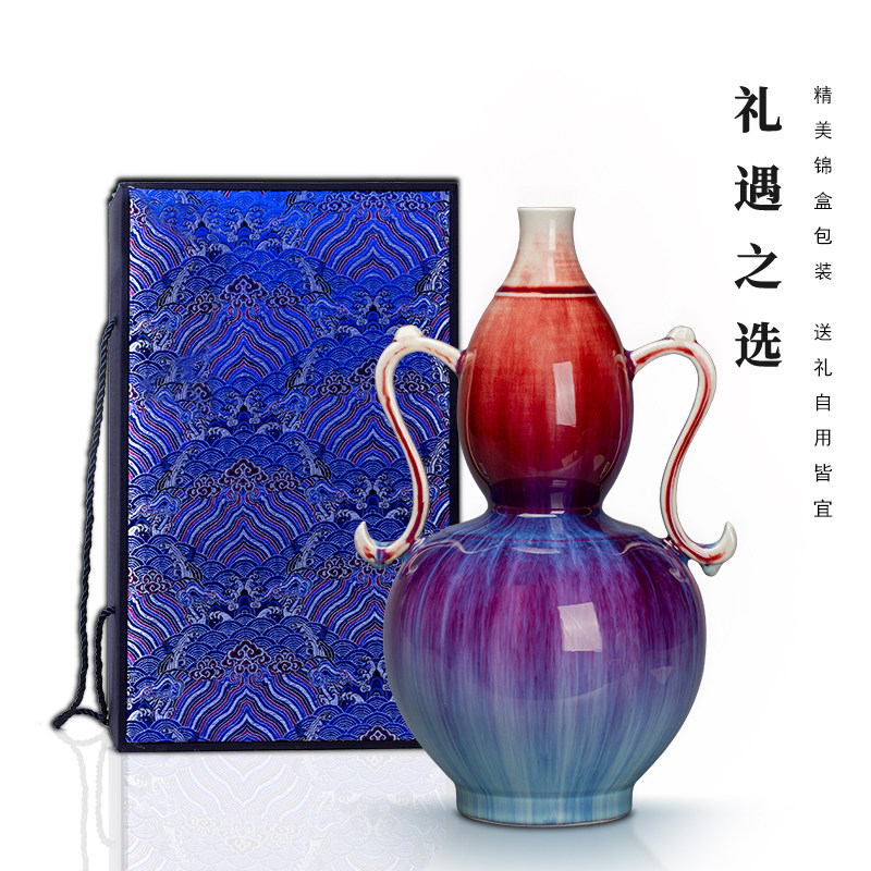 Lang red glaze binaural treasure gourd Lang red glaze binaural celestial ball bottle Lang red glaze binaural square shoulder bottle
