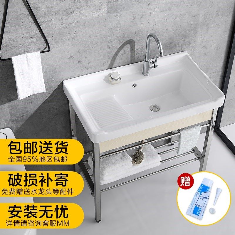 Stainless steel bracket Terra basin washbasin with washboard ceramic Laundry basin Balcony Ultra Deep Laundry Trough Pool Washbasin