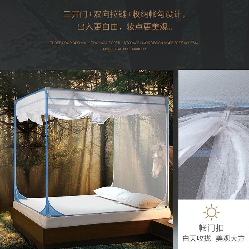 Fuanna encrypted mosquito net bracket fixed anti-fall children home three-door double square top mosquito net summer