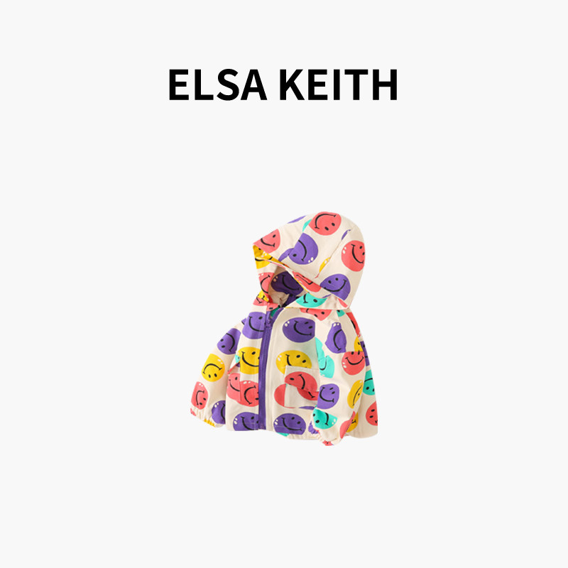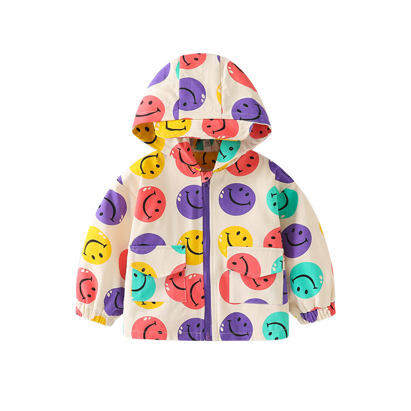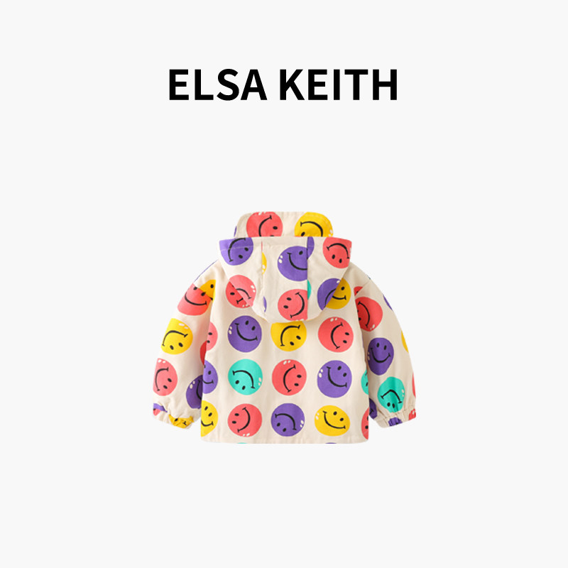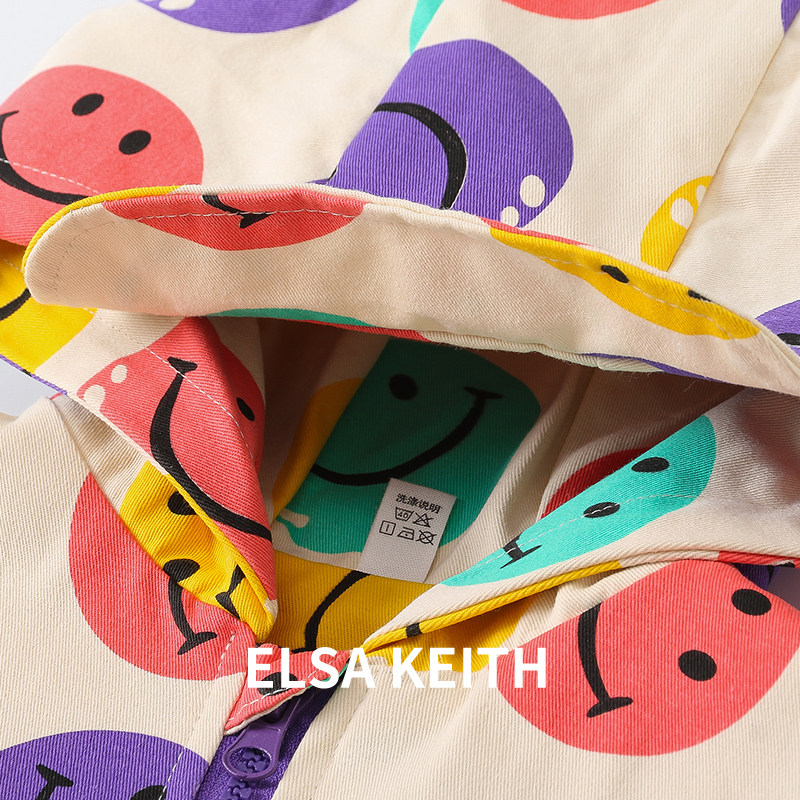 Japanese children's clothing ELSA KEITH girl jacket with cap spring 2022 new baby cartoon laughs face jacket tide